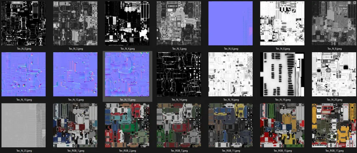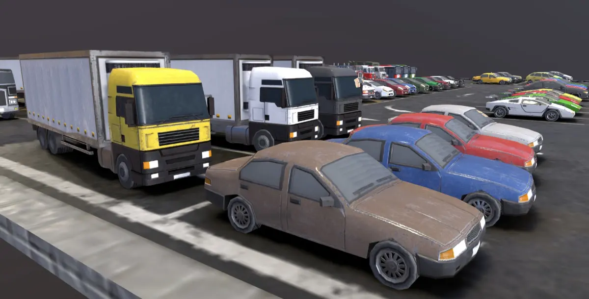 A low poly pack of different vehicles with PBR shading. The polycount for each car can be seen on the post of their windows (each wheel has around 100 tris). The pack contains 24 different vehicles with color variations. They are packed in 3 different UV Sets with their Albedo (up to 4 color variations), Roughness, Metallic, Normal and AO textures. You can check the packing using the model inspector