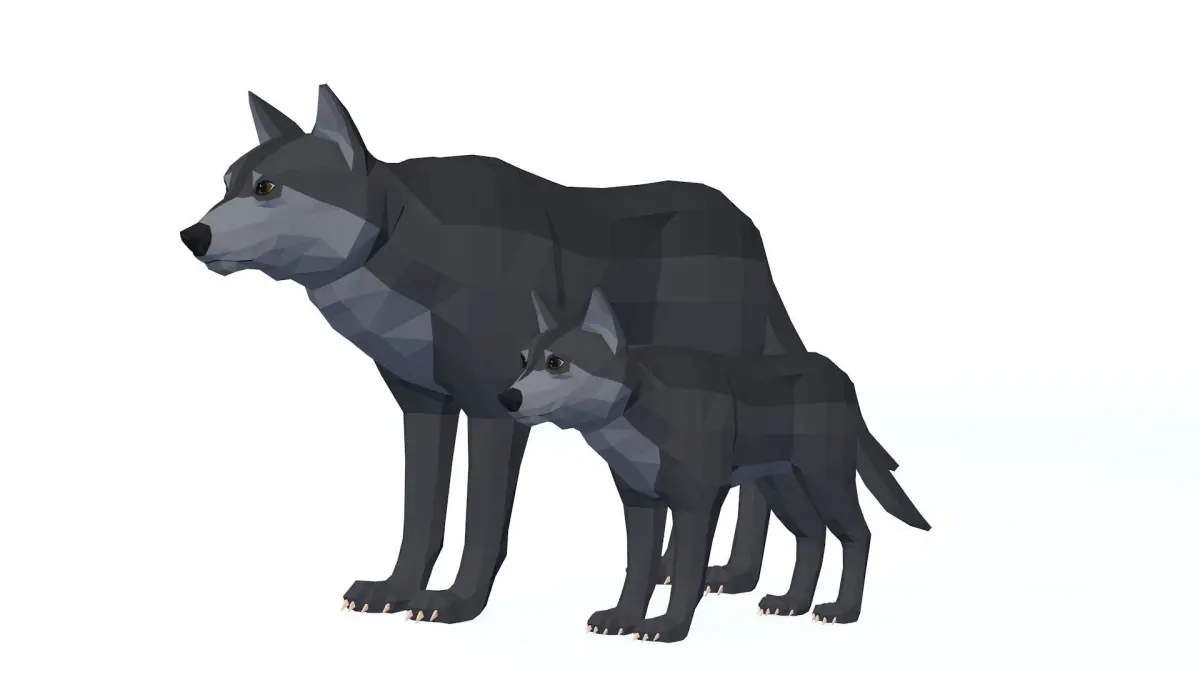 Pak includes 11 color and geometry variations of adult wolf, 11 color and geometry variations of wolf cub. This pack is perfect for any mobile and PC games.