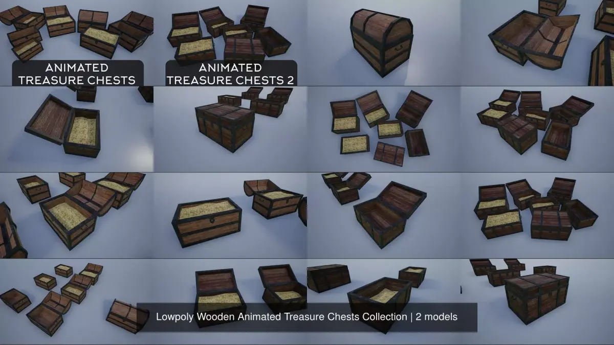 - Animated Chest Half : 321 polys, 708 tris, 364 verts - Animated Chest Full : 321 polys, 708 tris, 364 verts - Animated Chest Empty : 313 polys, 684 tris, 344 verts - Static Closed Chest Edgy : 277 polys, 600 tris, 298 verts - Static Empty Chest : 313 polys, 684 tris, 344 verts - Static No Cover Empty Chest : 199 polys, 408 tris, 212 verts - Static Full Chest : 321 polys, 708 tris, 364 verts - Static No Cover Full Chest : 207 polys, 432 tris, 232 verts - Static Half Chest : 321 polys, 708 tris, 364 verts - Static No Cover Half Chest : 207 polys, 432 tris, 232 verts - Anim Chest Half : 431 polys, 866 tris, 445 verts - Anim Chest Full : 431 polys, 866 tris, 445 verts - Anim Chest Empty : 420 polys, 834 tris, 429 verts - Static Closed Chest : 221 polys, 460 tris, 250 verts - Static Open Empty Chest : 420 polys, 834 tris, 429 verts - Static Open Empty Chest No Cover : 213 polys, 426 tris, 224 verts - Static Open Full Chest : 431 polys, 866 tris, 445 verts - Static Open Full Chest No Cover : 223 polys, 456 tris, 236 verts - Static Open Half Chest : 431 polys, 866 tris, 445 verts - Static Open Half Chest No Cover : 223 polys, 456 tris, 236 verts