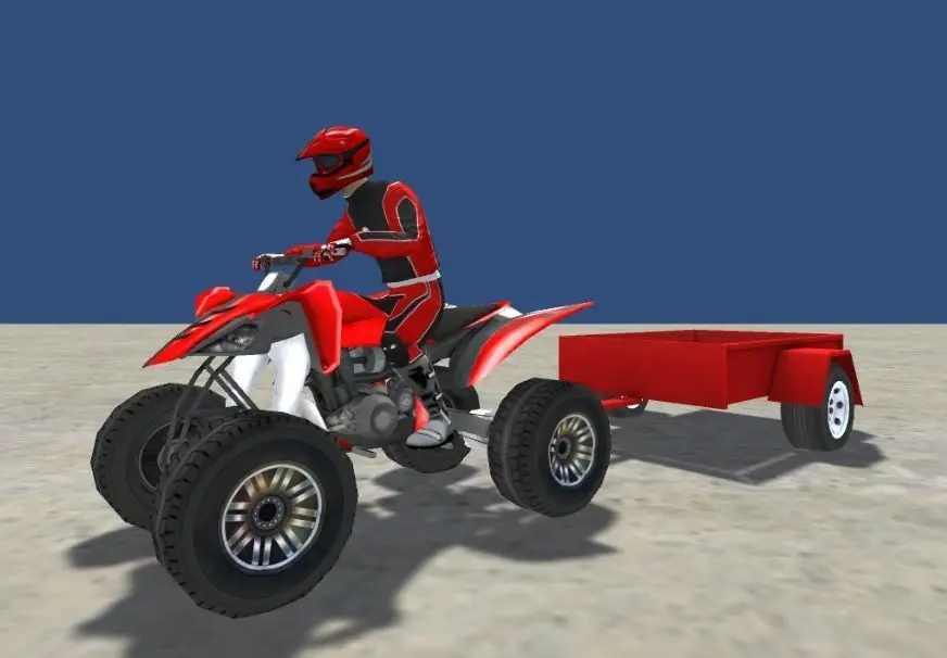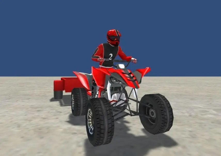 LowPolyQuadBikeWithTrailerandRider-2 person riding atv with t... Low-poly 3D model