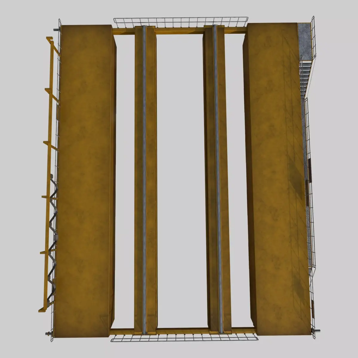 The model features accurate rail tracks, platform walkways, safety railings, and stair access, making it ideal for industrial visualization, simulation, or VR training. The design reflects realistic engineering accuracy and material detailing, with metallic surfaces, yellow protective paint, and weathered wear for authenticity.