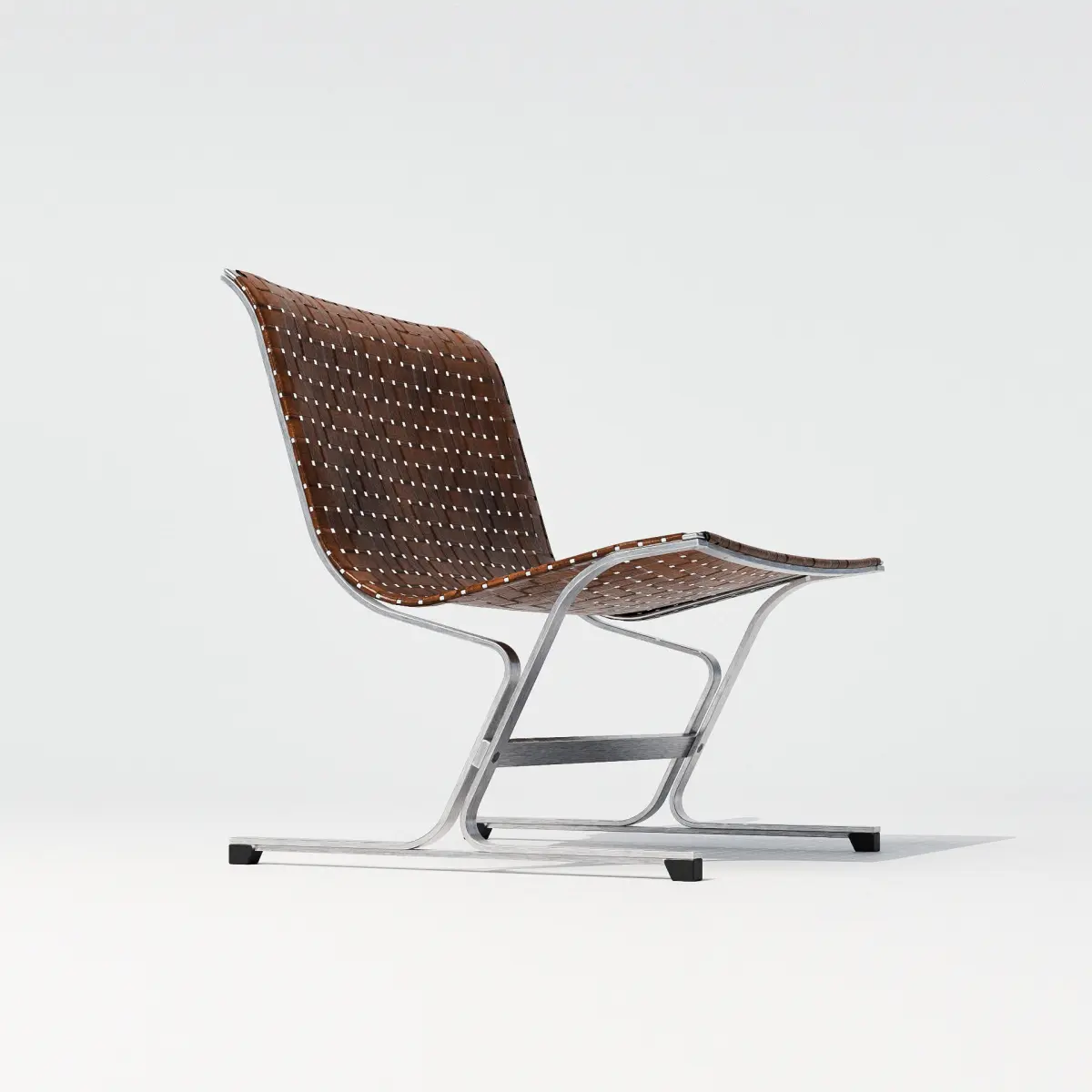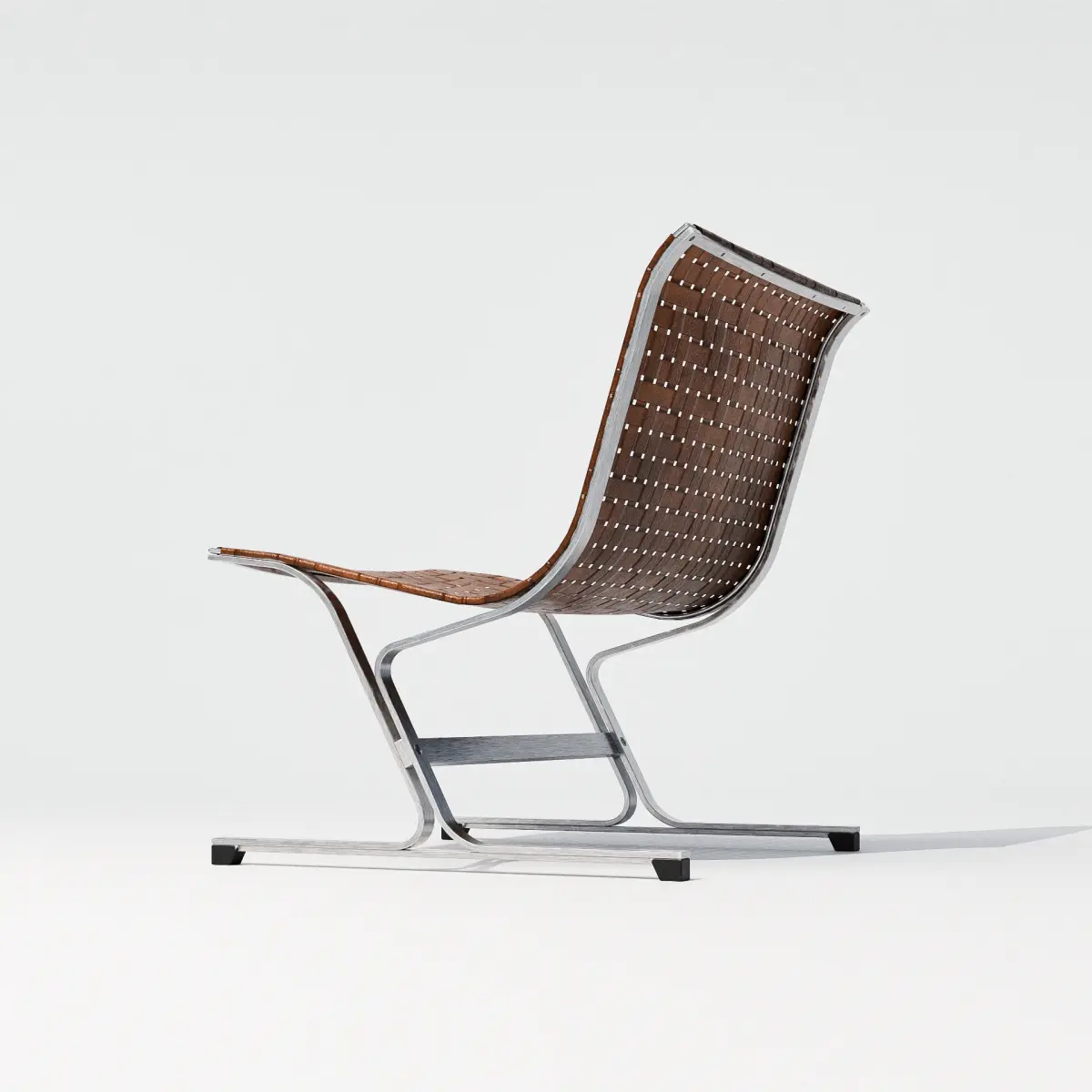Luar Lounge Chair is a faithful 3D interpretation of the iconic PLR 1 design by Ross Littell for ICF, Italy, originally released in the 1960s. The model features a sculptural stainless steel frame with sleek curves and precise welds, supporting a distinctive woven leather seat that delivers both structure and softness. The high-resolution PBR textures replicate the supple grain of aged leather and the brushed steel’s muted sheen, complete with subtle wear and stitching detail. Ideal for mid-century modern interiors, editorial visualizations, or design-centric scenes, this piece embodies functional elegance with a timeless, architectural presence.