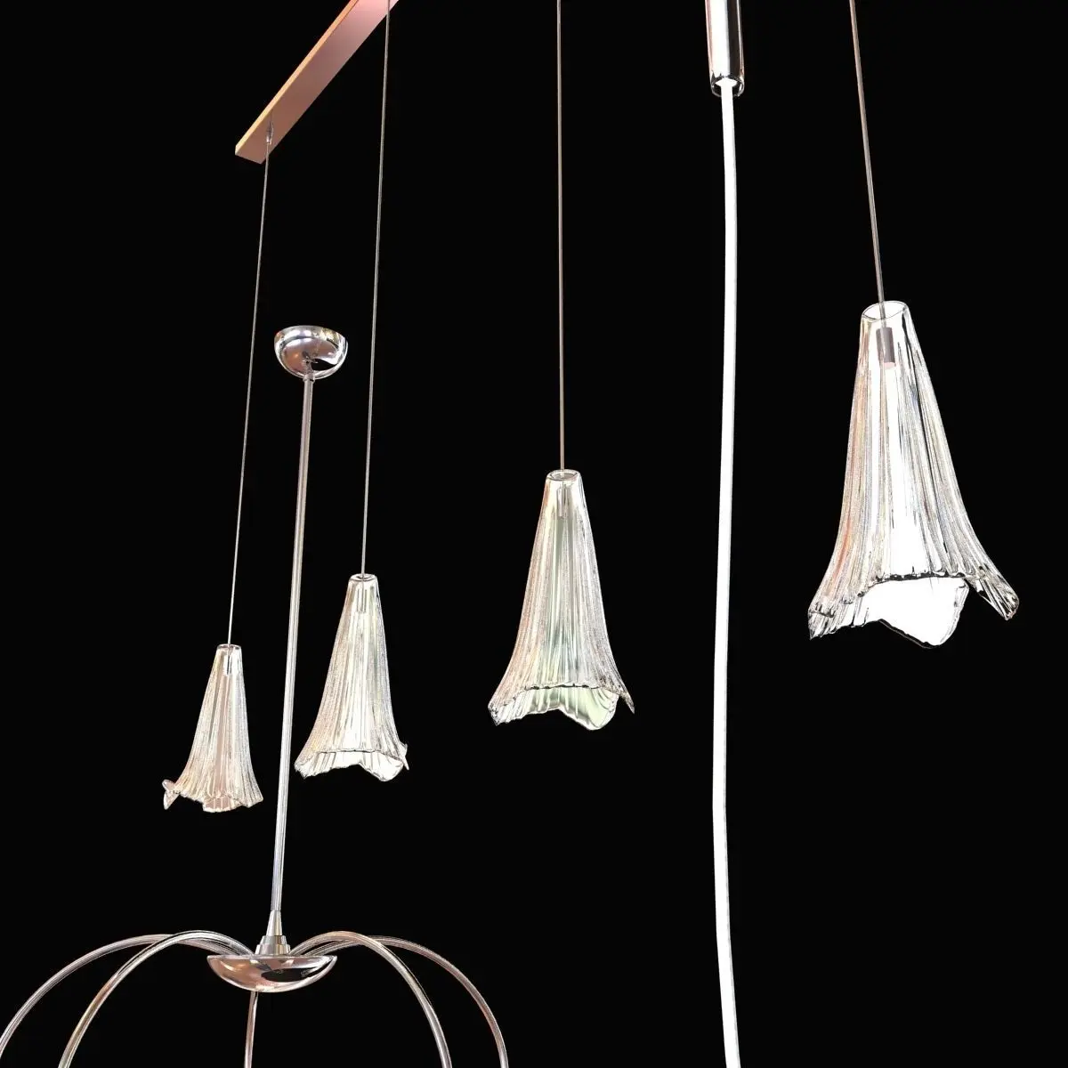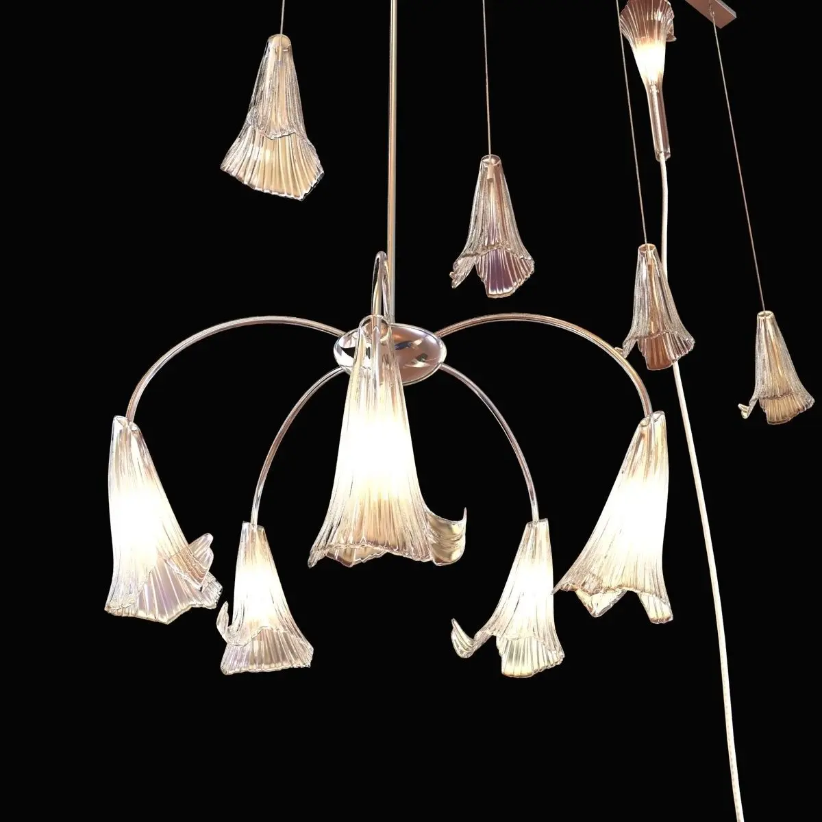 elegant line with delicate shades characterized by mouth-blown glasses with striped motifs and hand-bent by Murano masters.