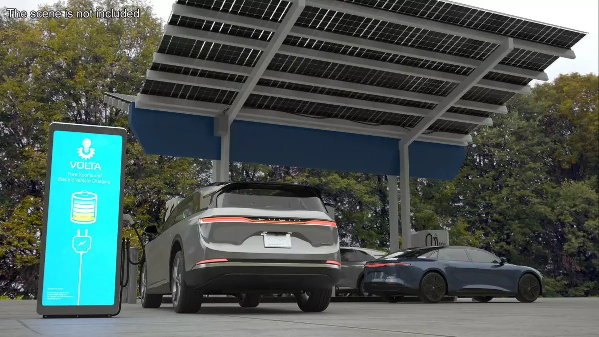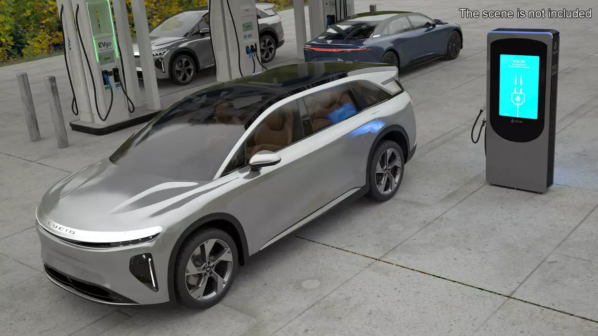 Lucid Gravity Electric SUV with Charging Station is a three-dimensional model of cutting-edge electric SUV (Sport Utility Vehicle) with car battery recharging device.