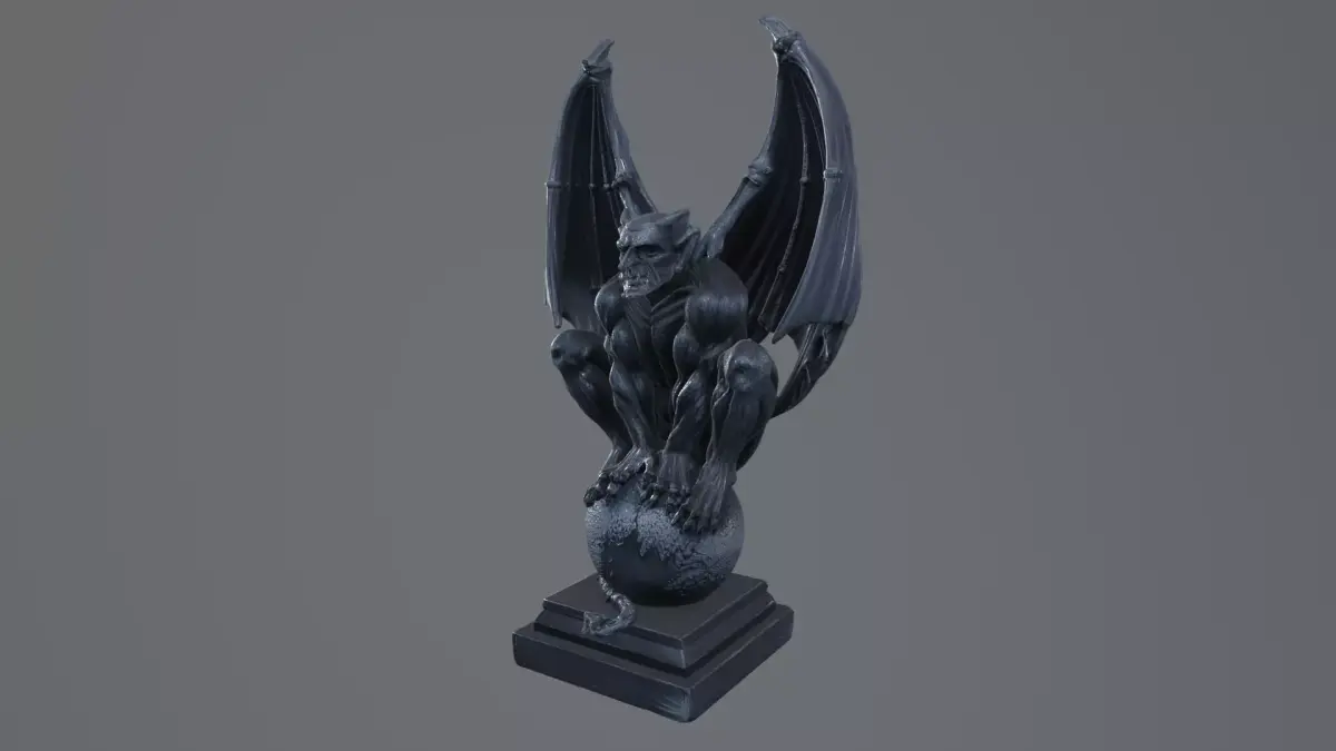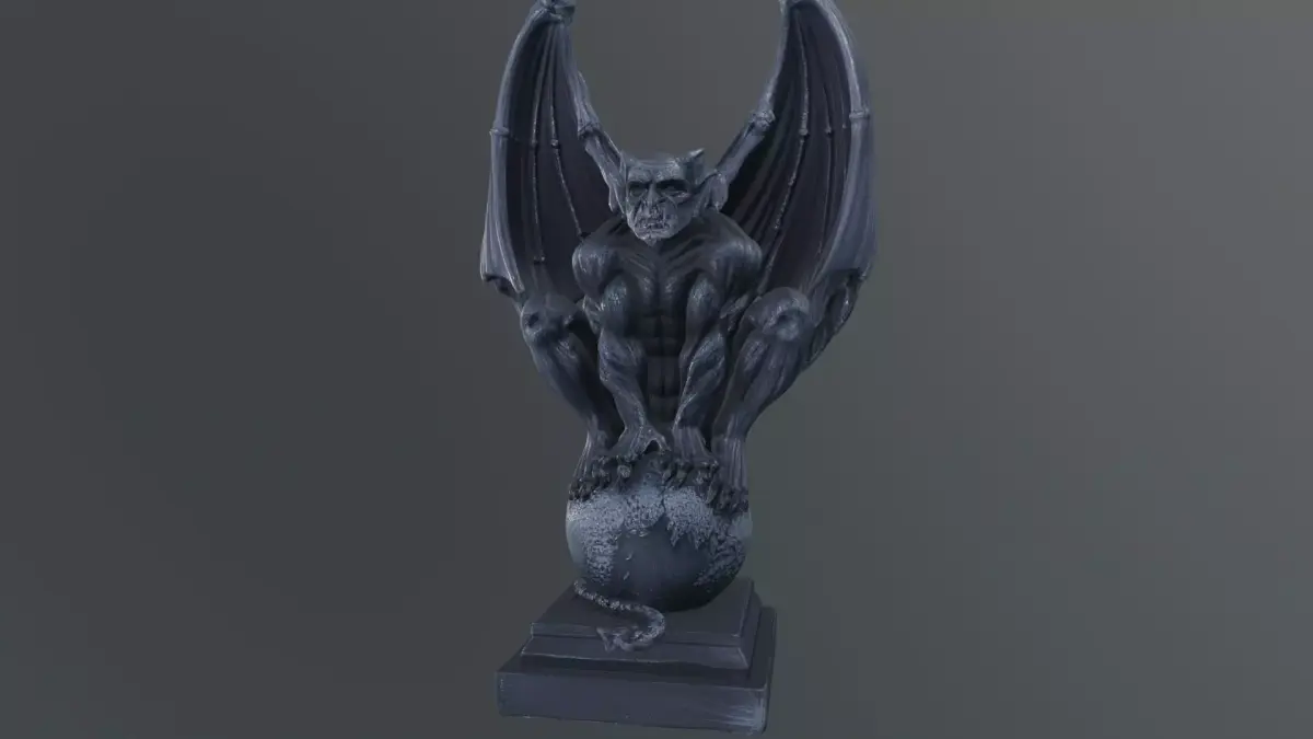 This 3D model features a demonic gargoyle-like statue perched on a stone sphere and base, with large spread wings and a tense, watchful pose. The design fits dark fantasy, gothic, and horror themes, making it suitable for use as a static statue prop in game environments, background scenes, or atmospheric set dressing. It also works well for cinematic renders, concept art, and portfolio presentations where a dark or ominous focal piece is needed. The model is intended for visual use and may require adjustments if prepared for other purposes.
