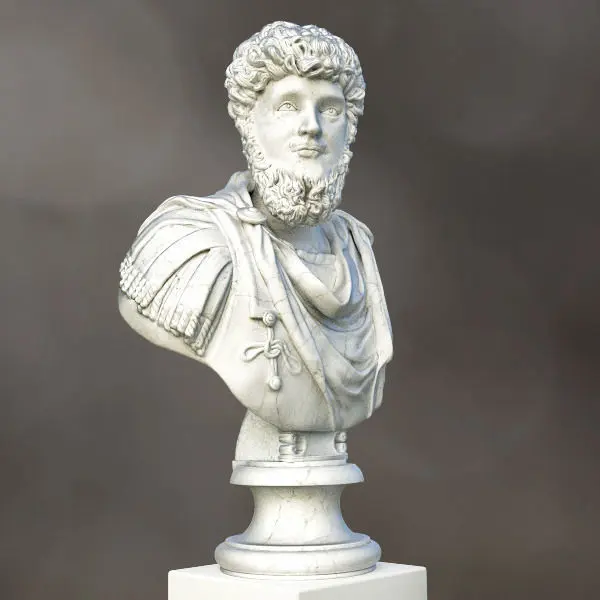 Very accurate 3D model of a young Lucius Verus Roman Emperor. Enjoy the fantastic details of this sculpture! The very best you can find!Rendered in Blender 2.72 with Cycles with 2 different materials (marble and old bronze) and high resolution textures (4096x4096), for very detailed photorealistic renderings. You can also use this two fantastic materials with your own models! This model require a 2.72 Blender built or higher. Different builts can give a little different results. This model is exported in .3ds, .fbx and .obj. Materials and only works in Blender, but textures are still usefull in other formats.