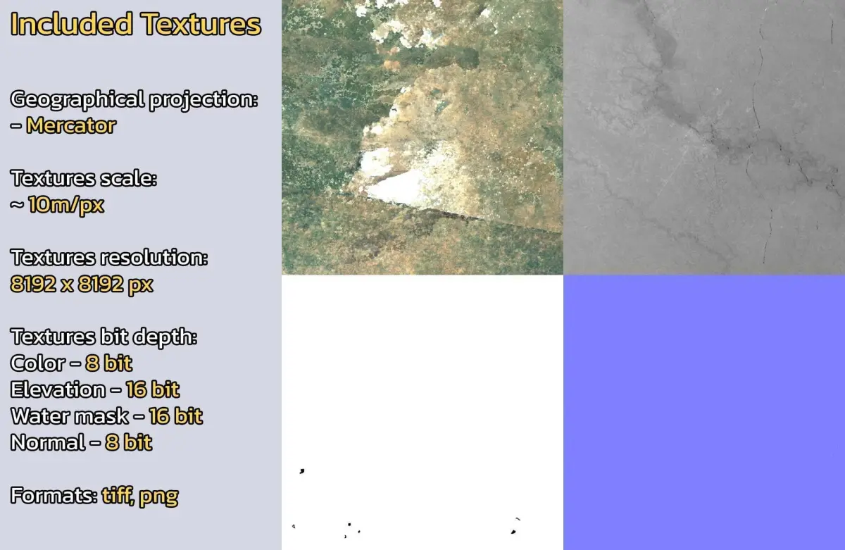 Warning: minor clouds/artifacts may be present on the diffuse color satellite texture due to the nature of the dataset. Check product images.