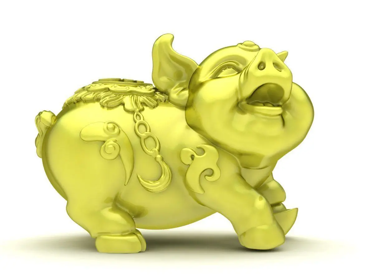 This Lucky Feng Shui Pig figurine 3D model represents prosperity, wealth, and good fortune in traditional Asian symbolism. The pig is carefully sculpted with rounded, full forms to convey abundance, happiness, and financial success. Decorative details on the body enhance the artistic and cultural value of the design.