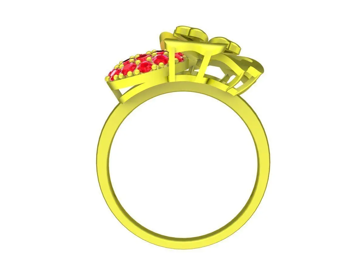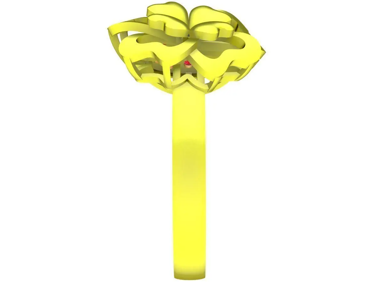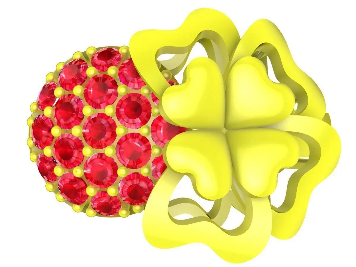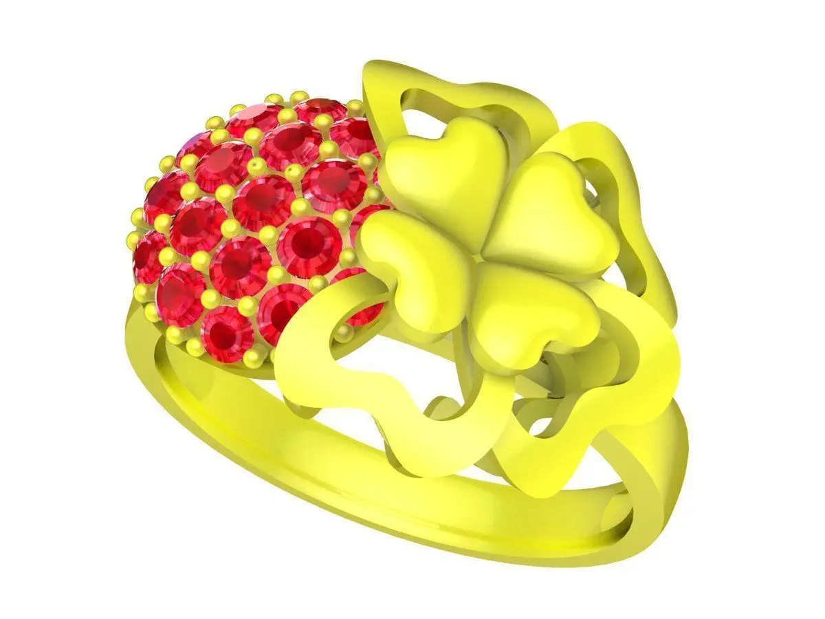 This lucky four leaf clover ring 3D jewelry model combines a symbolic clover motif with a round pave gemstone surface, creating a refined and feminine luxury design. The openwork clover overlay adds depth and visual contrast, while the dense pave setting enhances sparkle and brilliance.