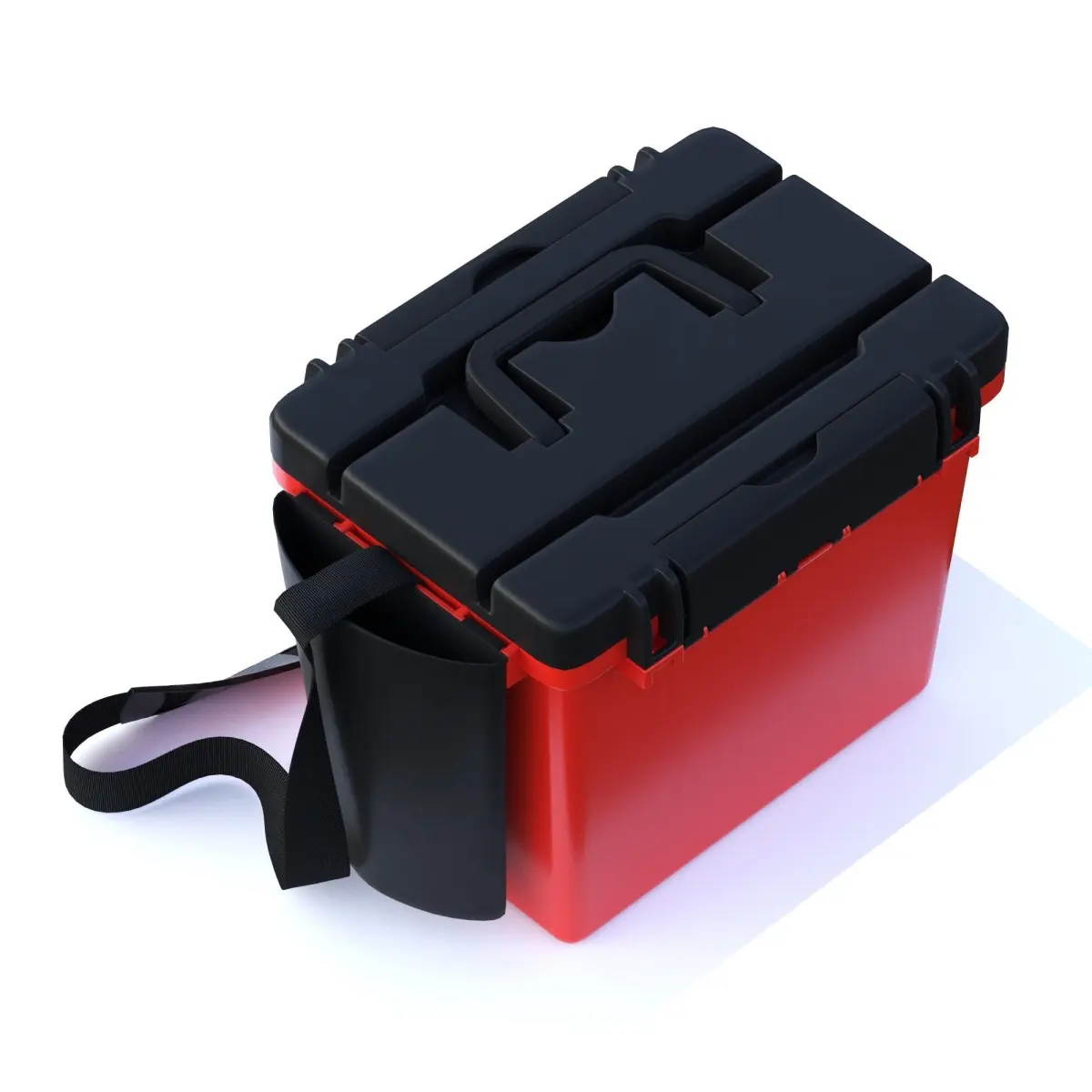 Ice fishing seatbox with handy compartments for ice rods, lures, baits and accessories.