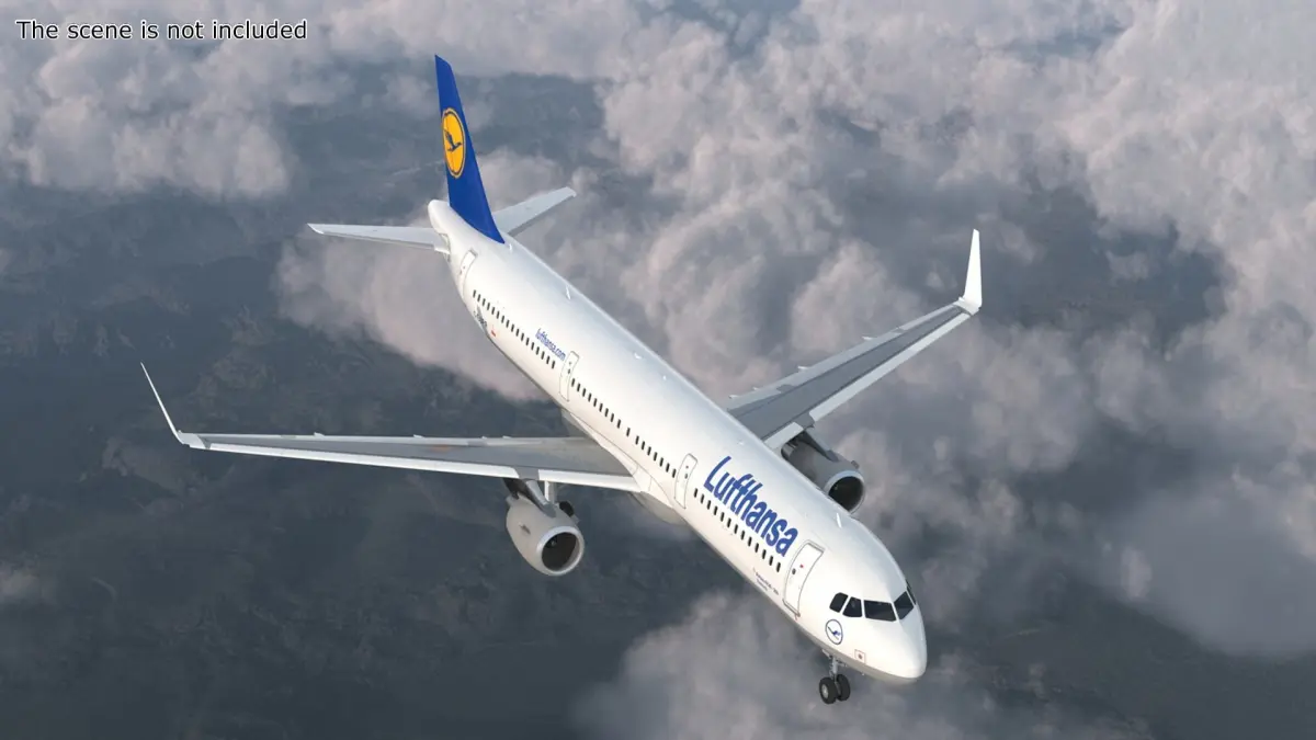Lufthansa Airbus A321 with Cabin and Cockpit Rigged for Maya is a 3d model of a commercial passenger aircraft, designed to represent a realistic depiction of a Lufthansa airplane for various simulation and visualization purposes.