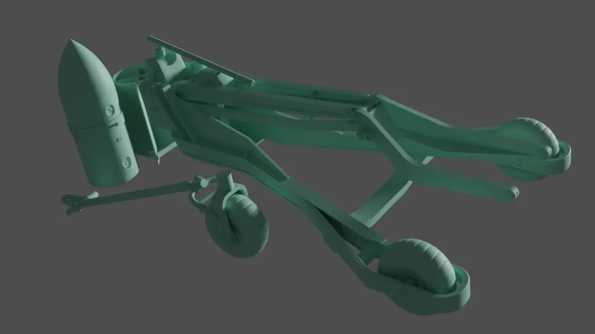Hint: Use some fine chain from the yoke around the bomb fins to complete the effect on your model. The bomb nose should rest near to the yoke, with the fins facing away from it. The largest bomb (not supplied) that camn be carried by this equipment is a 500kg bomb. These, along with crates can be found in my separate Luftwaffe bombs package.