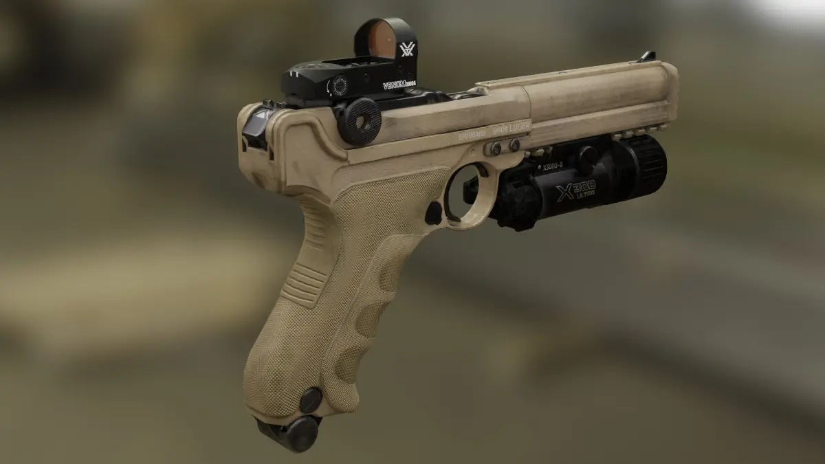Gun have one 4K PBR material(D/M/R/N) Flashlight and reddot have their own separate PRB textures and materials.