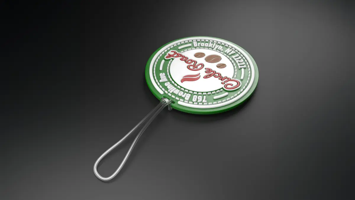 Eye-catching embossed silicone luggage tag with easy-to-customize textures for use with your custom images.Material shader includes notes showing where to change your textures.