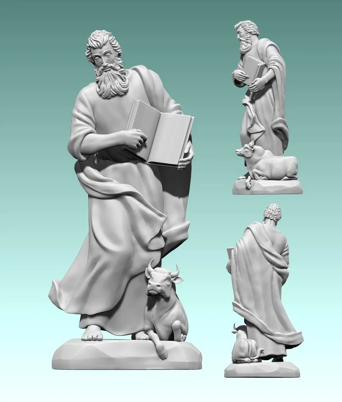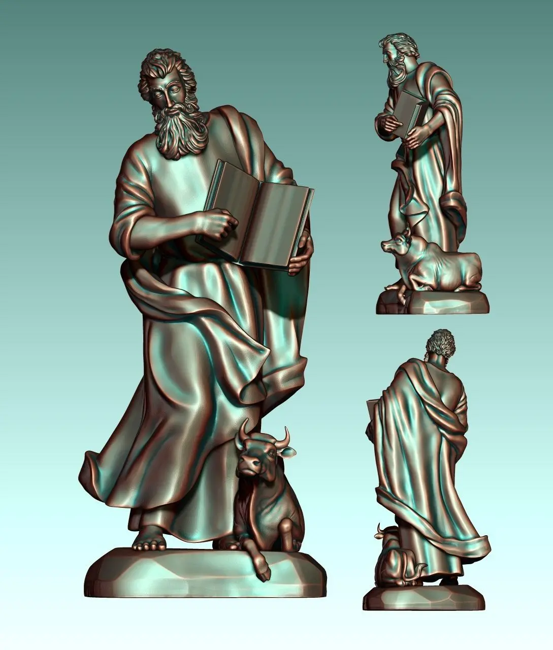 Work done in collaboration with a colleague for his carpentry. Originally designed for CNC Routing Machines. Based on classic designs of Catholic art., The model represents Lucas, one of the four evengelist. In the model I have tried to include all the symbology of the original figure, Specialy in the tunic,cape and the face ofbull.The file is ready for use, you can open it with Aspire or any CNC software. You can contact me if you find any problem.
