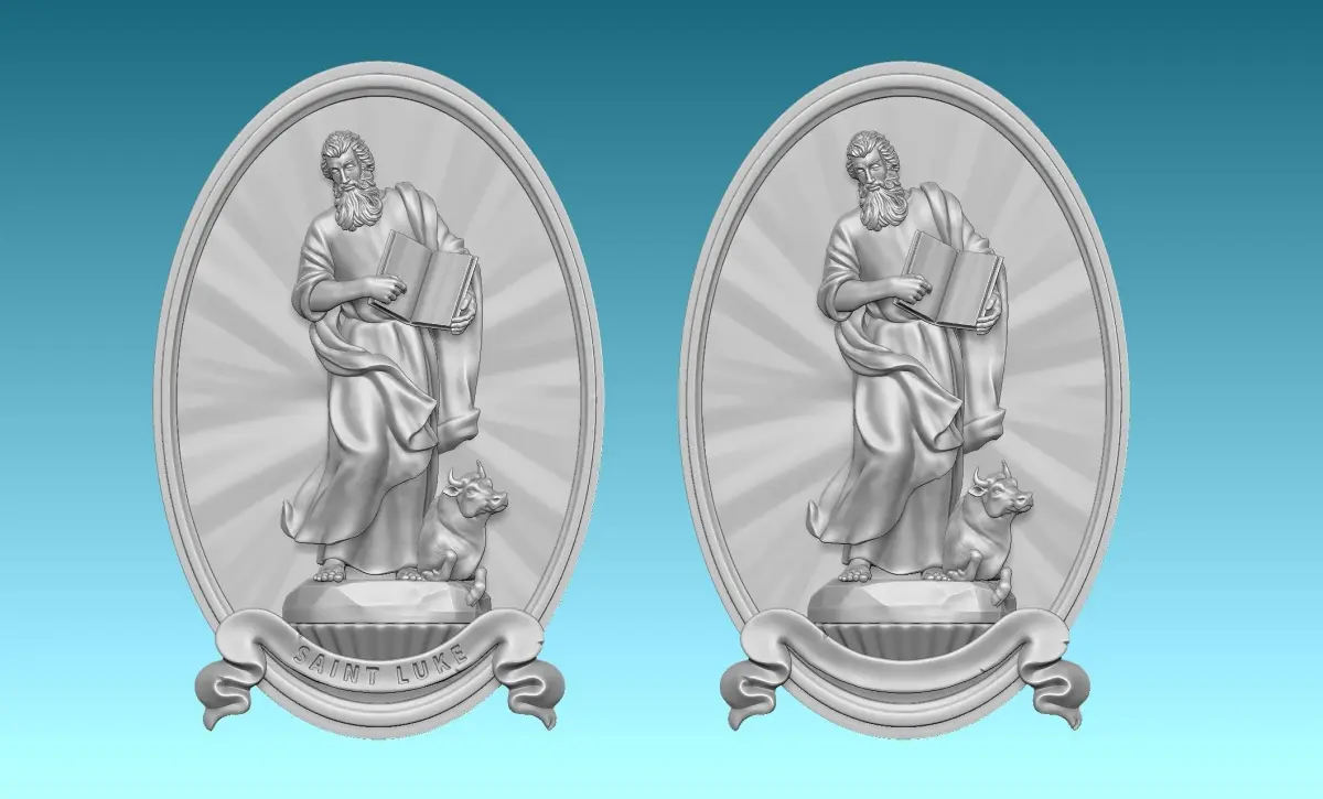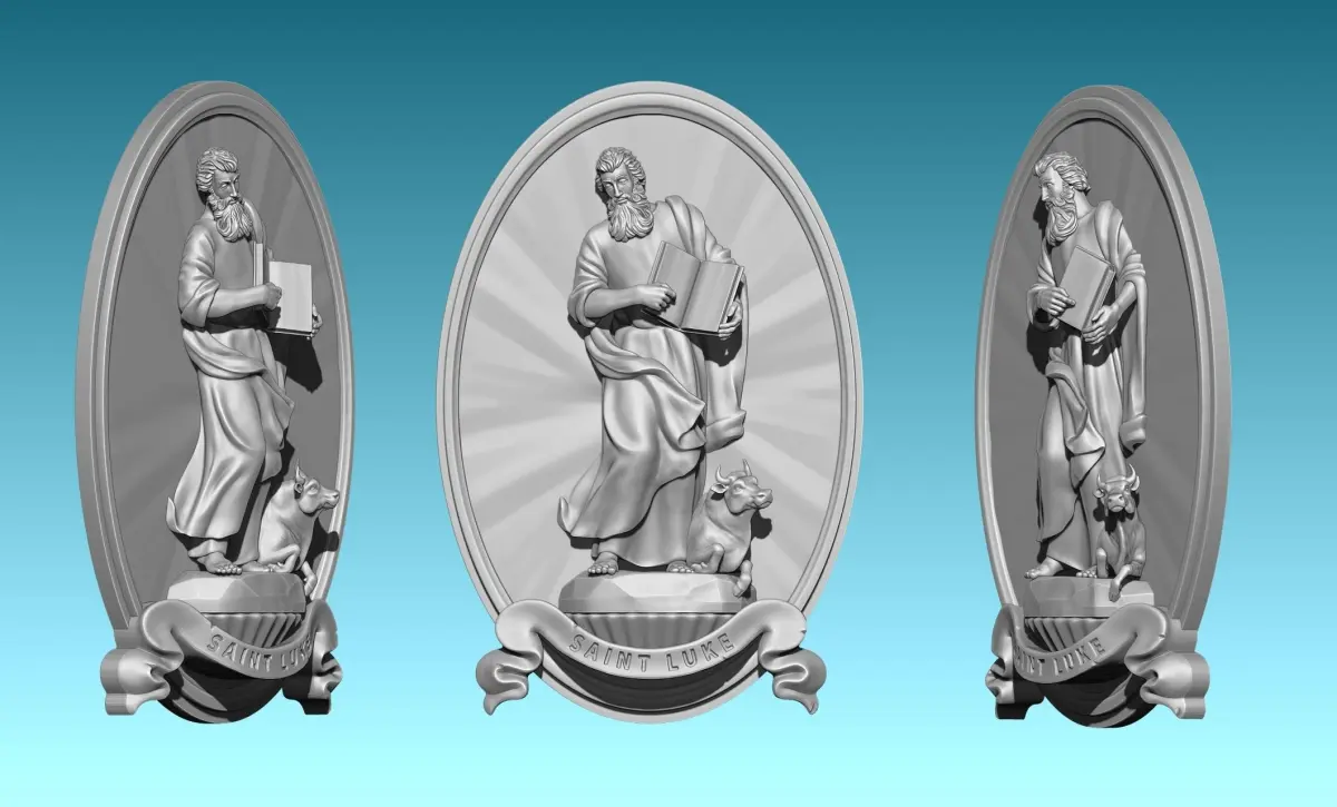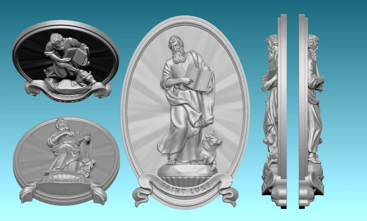 Work done in collaboration with a colleague for his carpentry, and modified for be a relief. Originally designed for CNC Routing Machines. Based on classic designs of Catholic art., The model represents Lucas, one of the four evengelist. In the model I have tried to include all the symbology of the original figure, Specialy in the tunic,cape and the face ofbull.The file is ready for use, you can open it with Aspire or any CNC software. You can contact me if you find any problem.