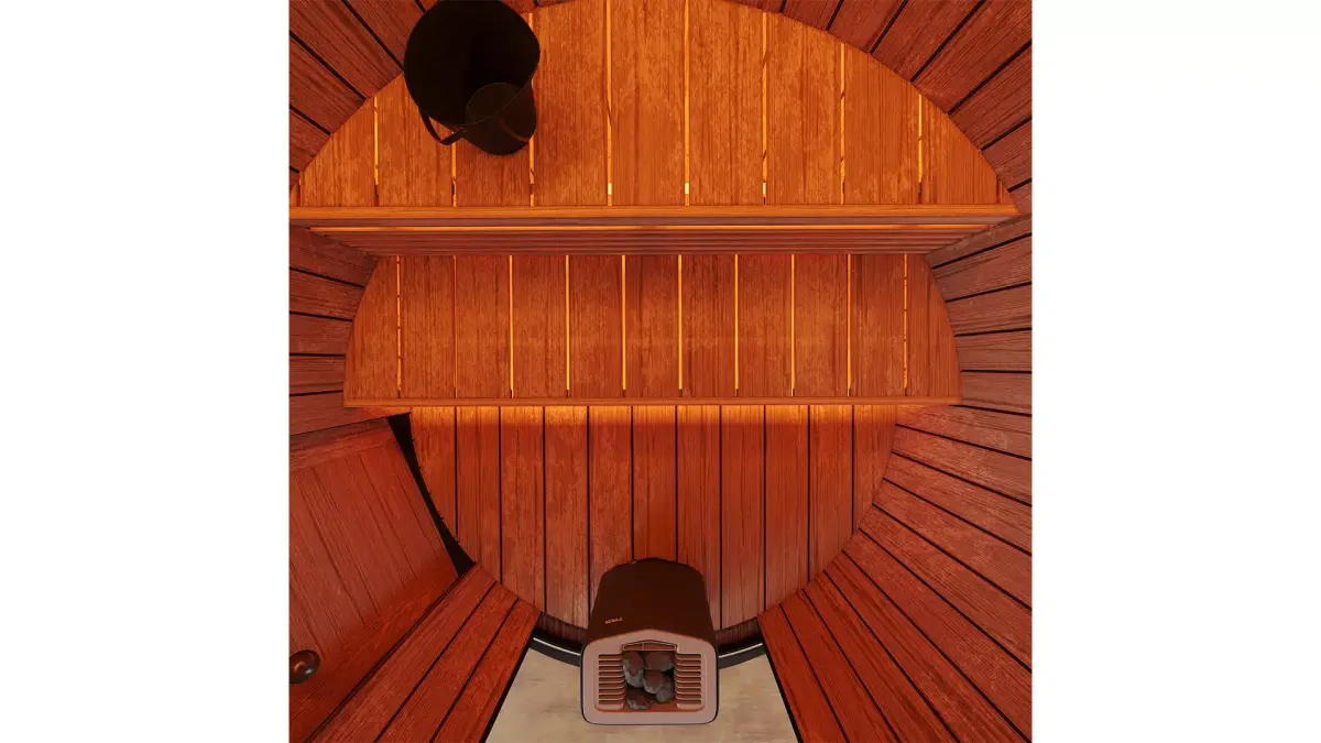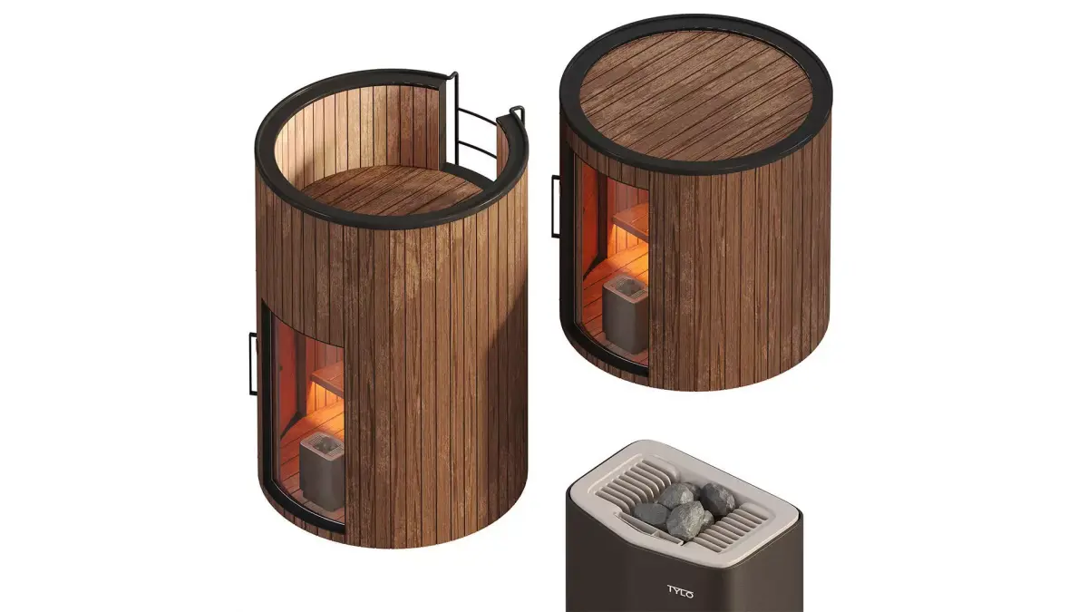One of the Lumi Pod saunas is ready-made, with a mini-roof terrace and the other one is small.