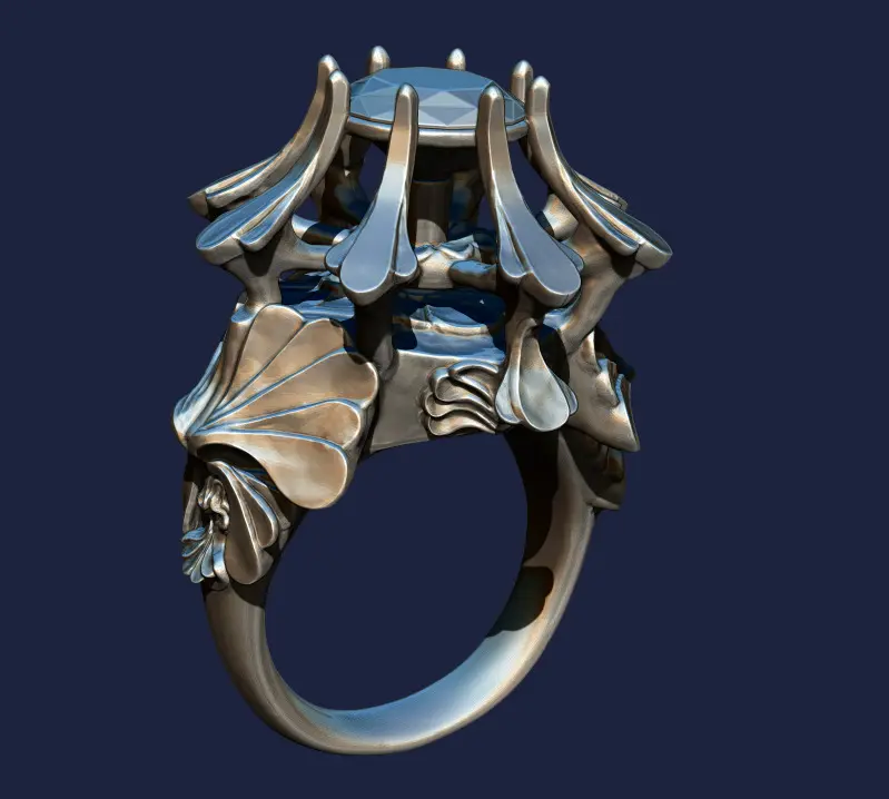 A masterpiece of regal elegance, the Luminara Crest Ring exudes an air of sophistication and mystique. Intricately sculpted, its ornate floral and shell-like motifs wrap around the band, creating a delicate yet commanding presence. The centrepiece—a luminous gemstone—rests within a meticulously crafted setting, radiating brilliance from every angle. Inspired by celestial grandeur and gothic artistry, this ring is a statement of timeless refinement, perfect for those who appreciate heritage, craftsmanship, and captivating allure.This ring comes in 06 different sizes, from 04 to 09, to cover all women's sizes, and this ring requires a gemstone of 2.5 to 2.7 carats(8.4 to 8.8mm). We have also included an OBJ file with textures and different maps.