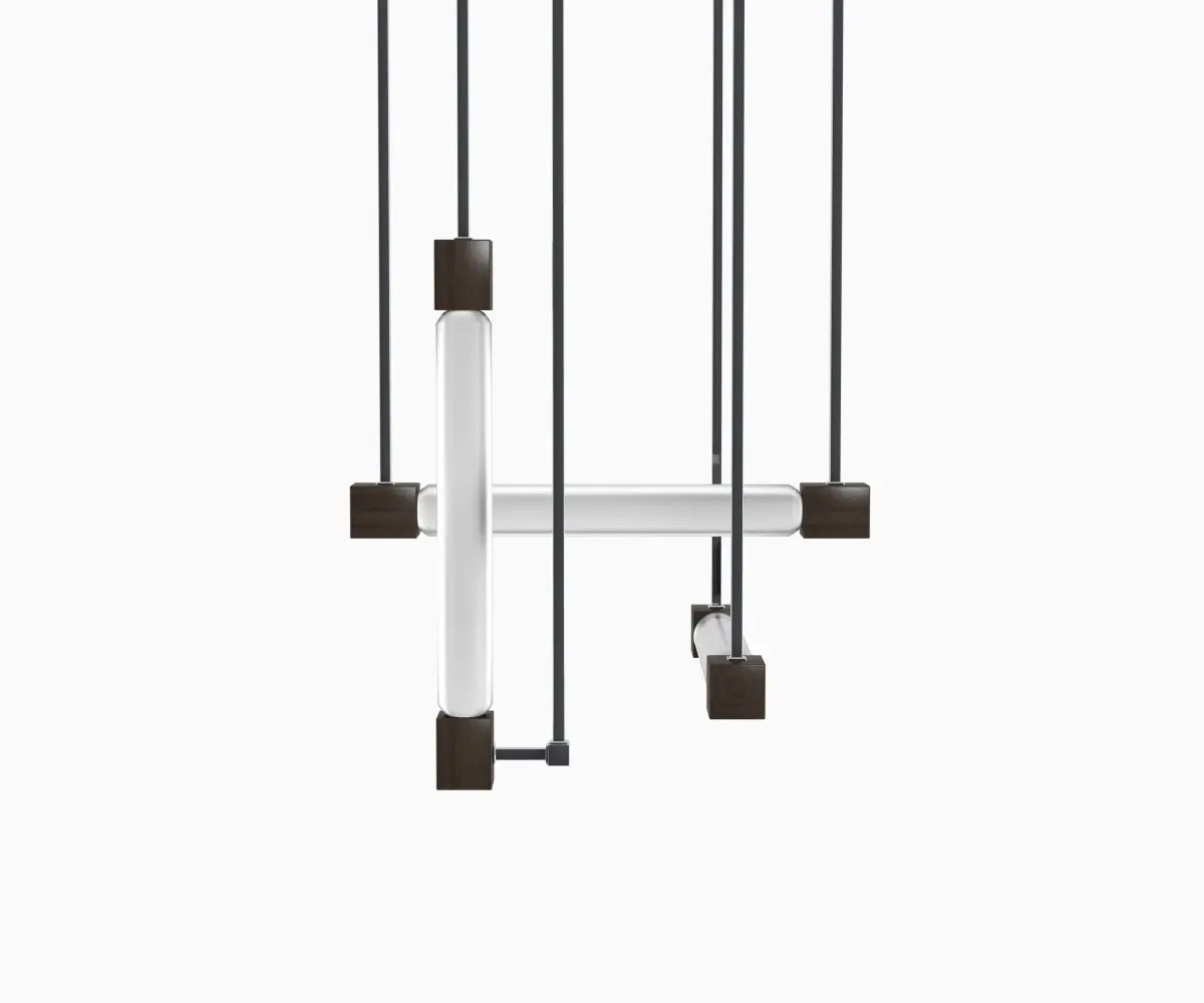 It was while designinh a consulting room for Dr. Hartog of Maarssen in The Netherlands in 1922 that the Dutch architect and designer Gerrit Rietveld developed the first prototype of a ceiling light consisting of elements arranged at right angles to each other. Wood and glass construction with glass tube light.