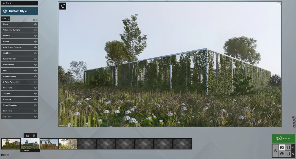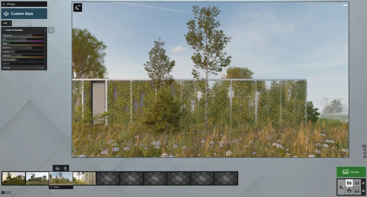 • rendered with lumion 12.5. This Lumion 12.5 scene is for educational purposes. This is one of our most beautiful scenes made with lumion and you can study it, check out how the grass and settings is made. You can also save lumion settings and use it for your own projects. Final images had slight postproduction with lighroom. p.s. for lumion file you need a good pc because it's very big file All of our models and presets are made by our studio and are one of the kind. We are working profesionaly with exterior design, renderings and animations for a number of times. We are using lumion software as our main go to real time rendering platform and we are experts at itLumion file contains 4 images with settings