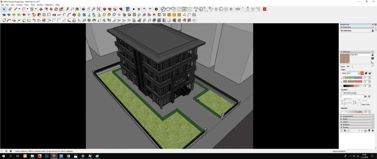 Office Facade Design 2 : Lumion 9 file and settings & Sketchup file . Just press Render button!!! This exterior scene created in Sketchup 17 and rendered in Lumion 9 programme.