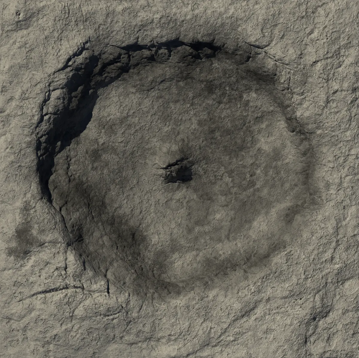 This is a representation of the Tycho crater from the Moon. It has high-resolution textures and a high poly mesh, ready for closeups. It has a different form than a normal crater, it has a small bump in the middle. The crater is a very detailed representation of the Moon's surface.