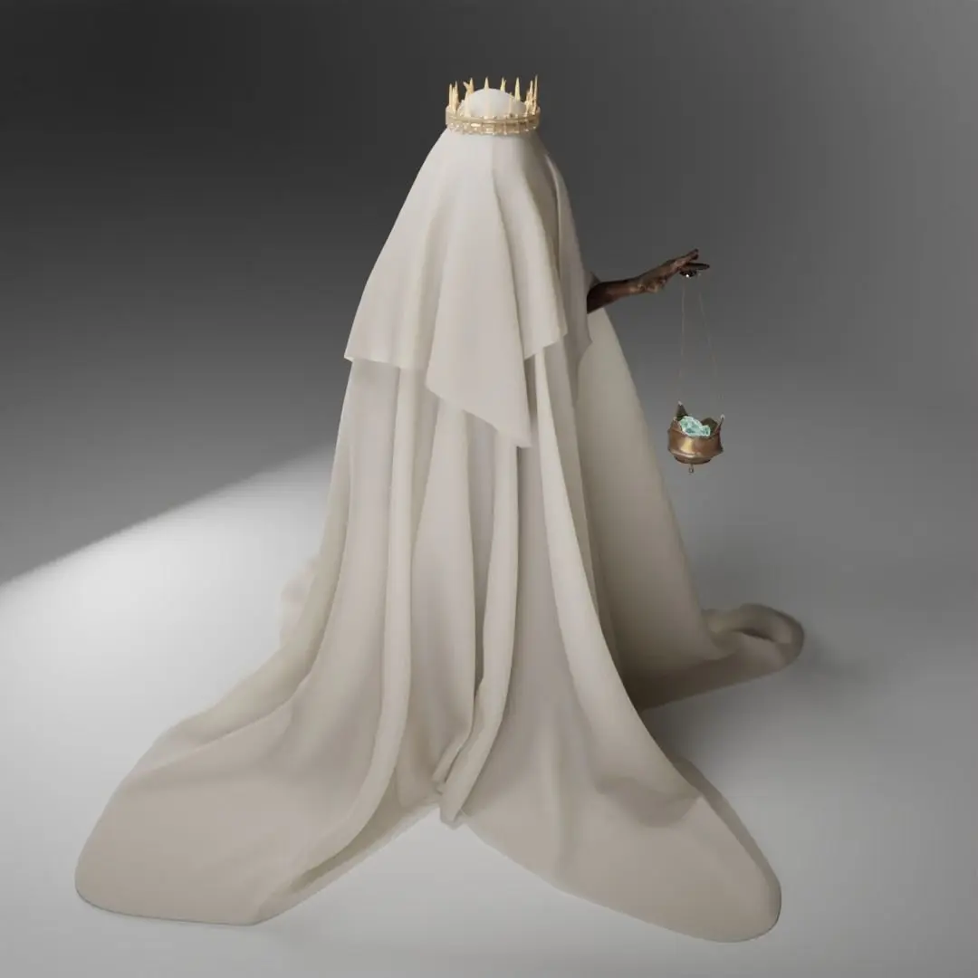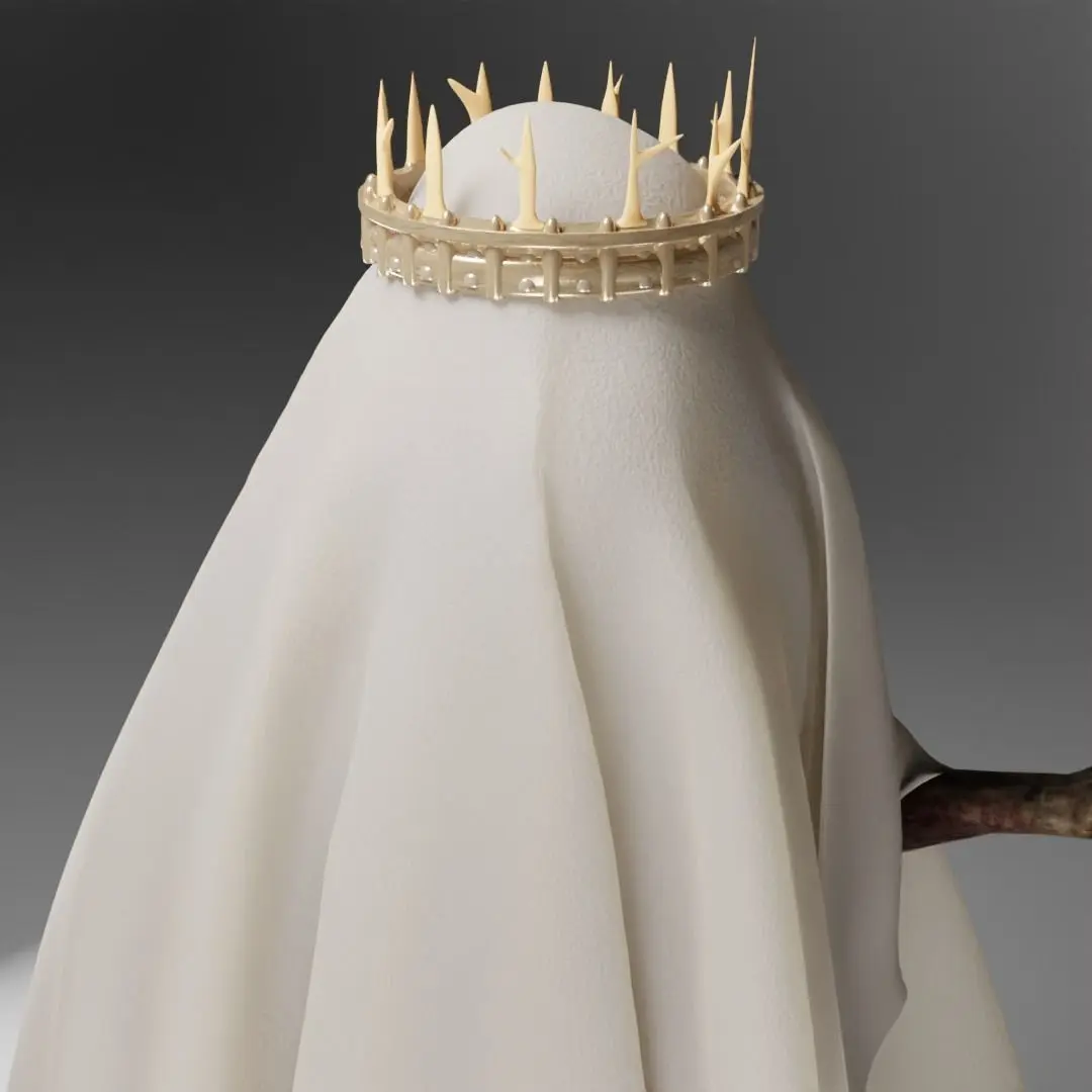 fantasy character named lunatic discpile, man covered by cloth. optimized for blender render.