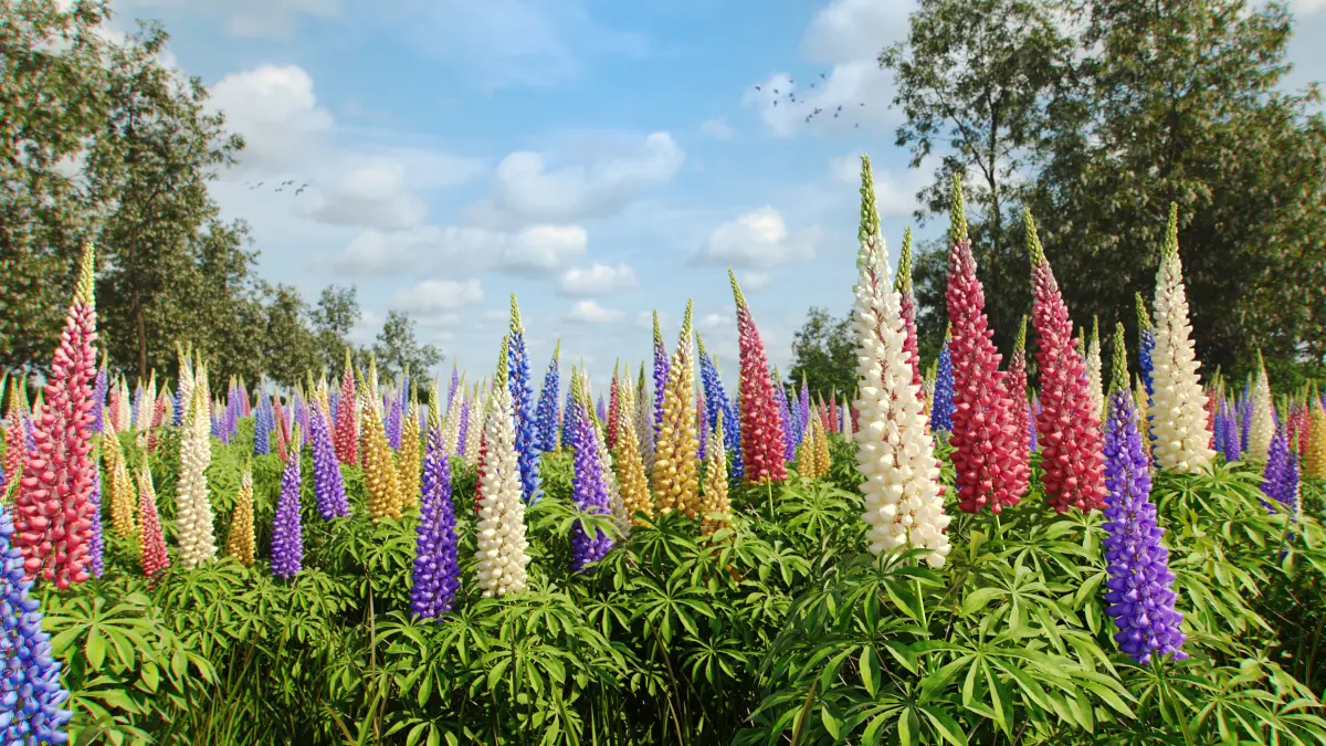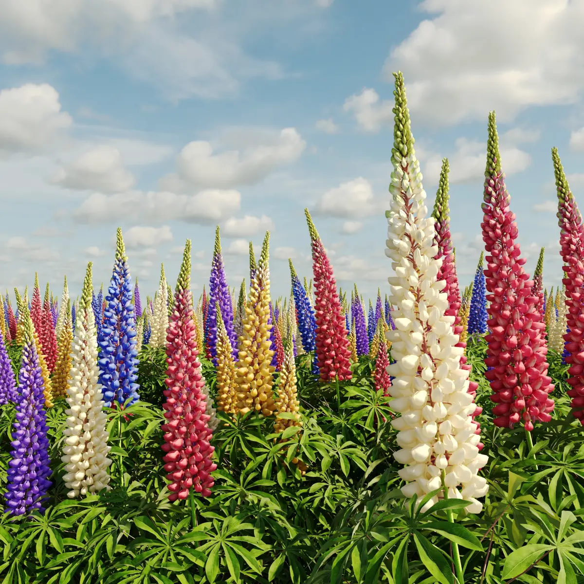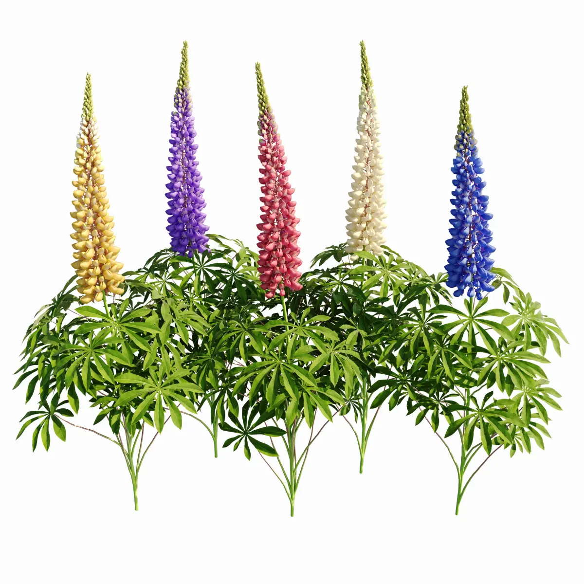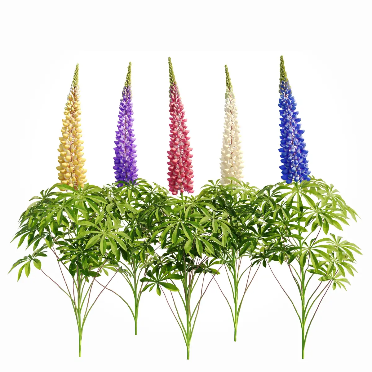 Lupine bush LupinusThe set includes five different versions of flower bushes in five different colors, the average size of the bush: height 800 mm, diameter 330 mm.All elements of the model and materials have logical names.The model is prepared for rendering in Corona render and V-ray.There are: