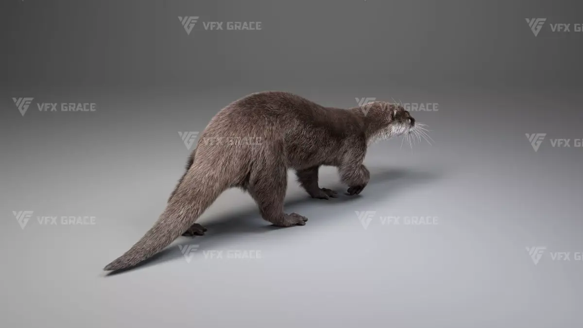 This meticulously crafted, realistic otter character was created in Blender and rendered with the Cycles renderer. It includes the model, textures, hair, rigging, and four realistic animations. The model was built based on real anatomical references and features a detailed oral cavity. Most textures are in 4K resolution. The hair was carefully groomed to follow natural flow and volume, giving the otter a rich and dimensional appearance that fits seamlessly into natural environments. The character includes a comprehensive rigging system that ensures expressive performance, making it easy to integrate into various production pipelines while presenting a lifelike and vivid character.