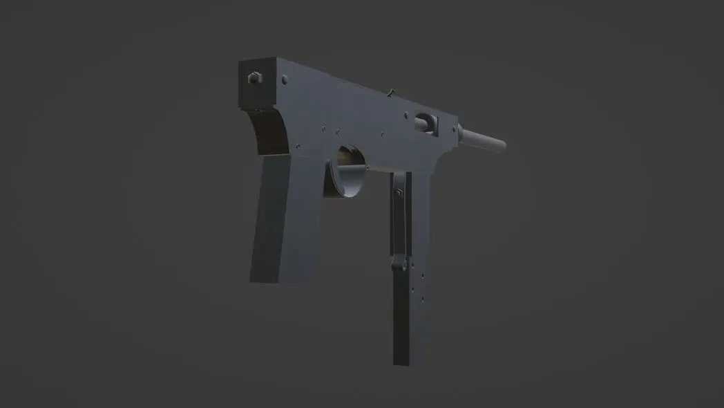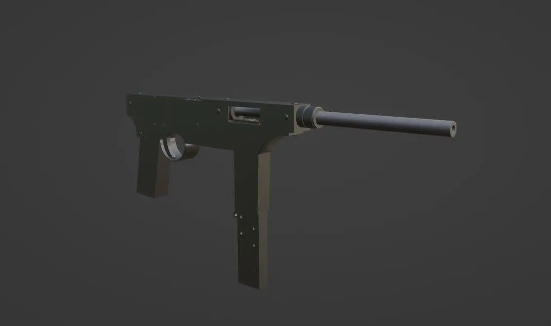 Luty SMG model is based on homemade submachine gun design created and published by Philip A. Luty. Models metrics are based on .45 ACP pistol caliber ammunition. Model was made using Blender 3.0.
