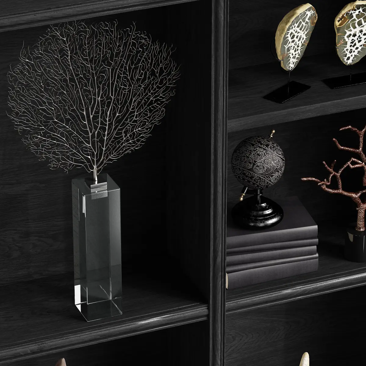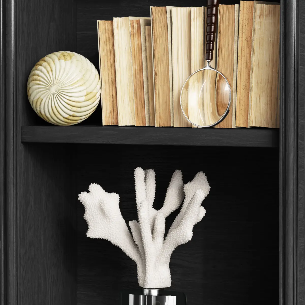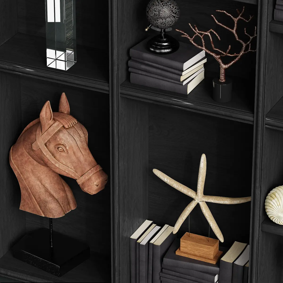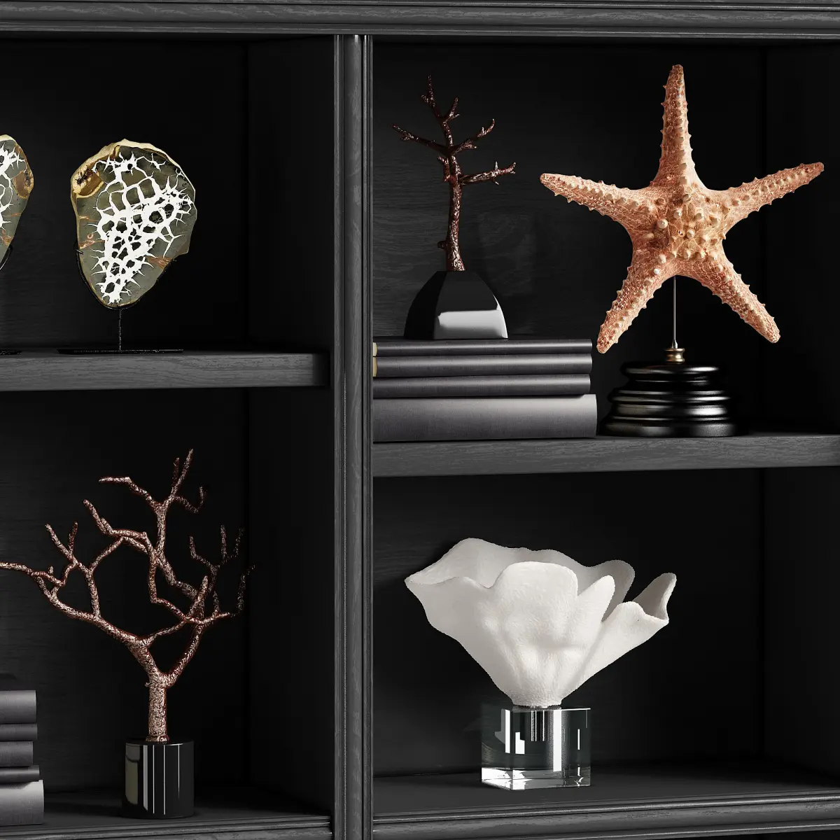 - ARTERIORS SET OF 2 BANYAN SCULPTURES- JOHN-RICHARD GREAT BARRIER CORAL SCULPTURE- JOHN-RICHARD SHORE CORAL SCULPTURE- JOHN-RICHARD TALL NATURAL SEA FAN SCULPTURE- LEATHER ANTIQUE GLOBE- LUXDECO BONE DECORATIVE BALL- SET OF 2 BLACK & WHITE SPLIT GEODES- TIGER STARFISH ON STAND- WHITE STARFISH ON STAND- WOODEN HORSE HEAD ON STAND