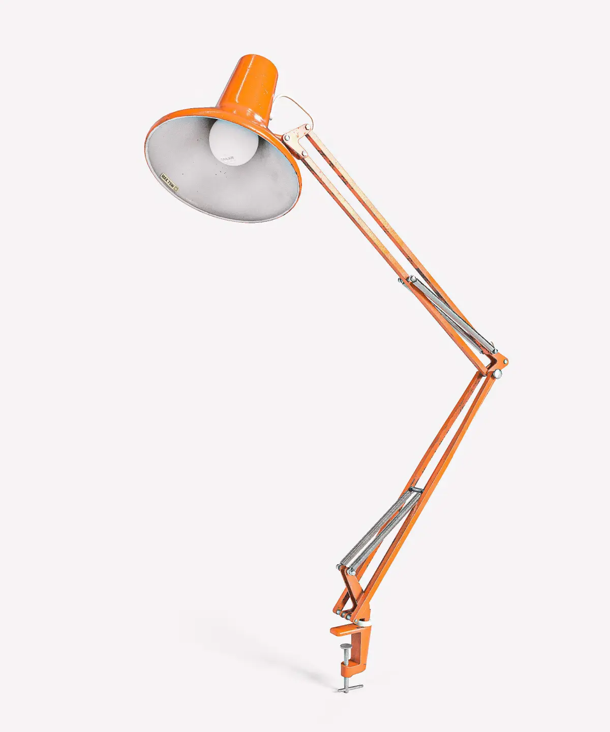Norwegian Luxo L-1P orange design lamp replica from the 1930’s.