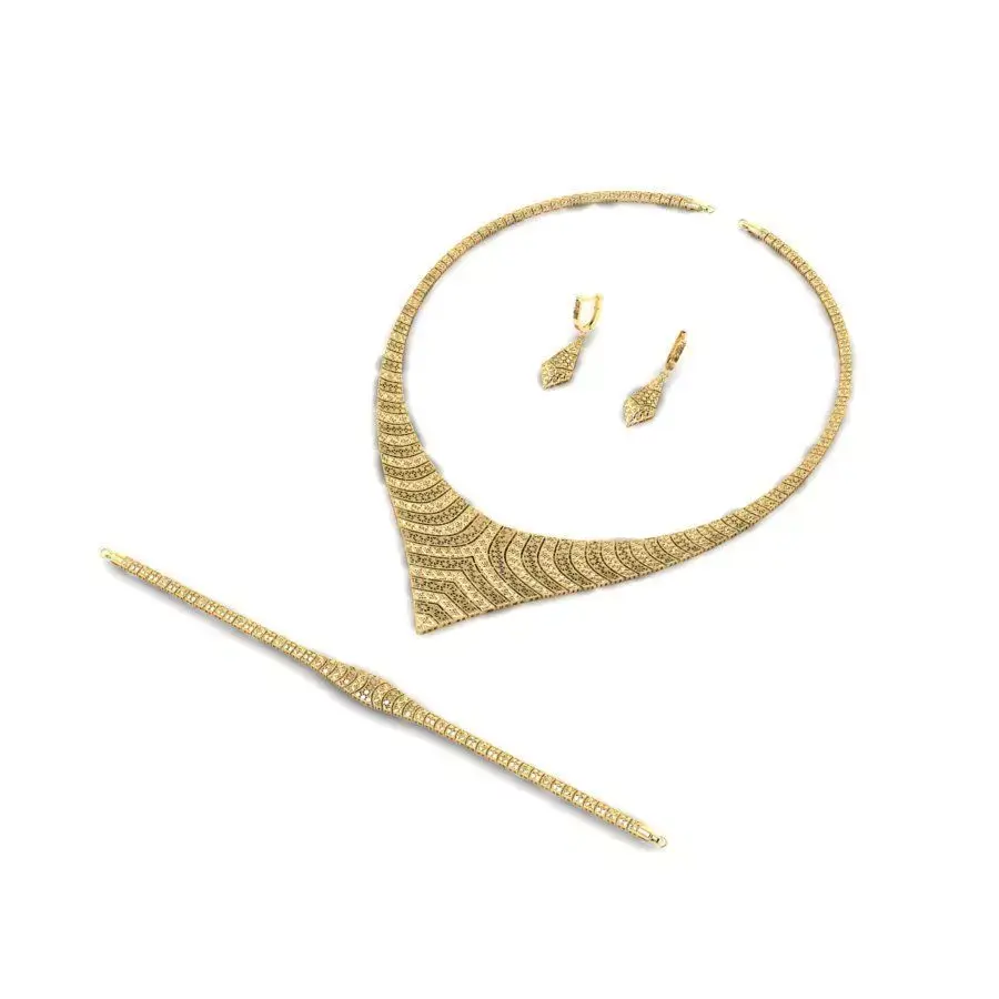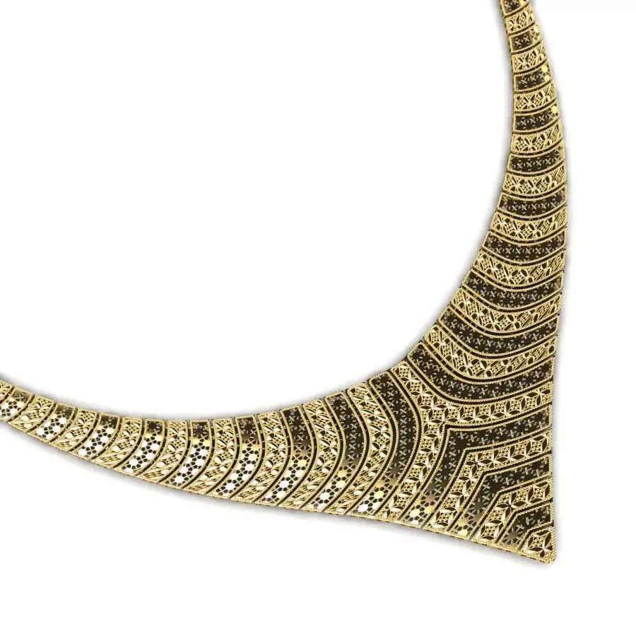 Golden Waves Jewelry Set – A luxurious 3D model designed for elegance and royalty. Featuring a statement V-shape gold necklace with matching bracelet and earrings, this set shines with fine details and layered patterns. Perfect for 3D printing in 10K, 14K, 18K gold, or 925 silver. Ideal for weddings, luxury fashion, or exclusive jewelry collections.