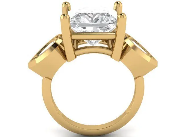 This ring features a round center stone flanked by two teardrop-shaped stones, giving it a distinctive and exclusive look. The square stone in the center measures 8 mm in diameter, while the two teardrop stones measure 6 x 4 mm, enhancing the ring's beauty. The combination of these stones ensures that the ring sparkles brilliantly in the light, drawing everyone's attention.