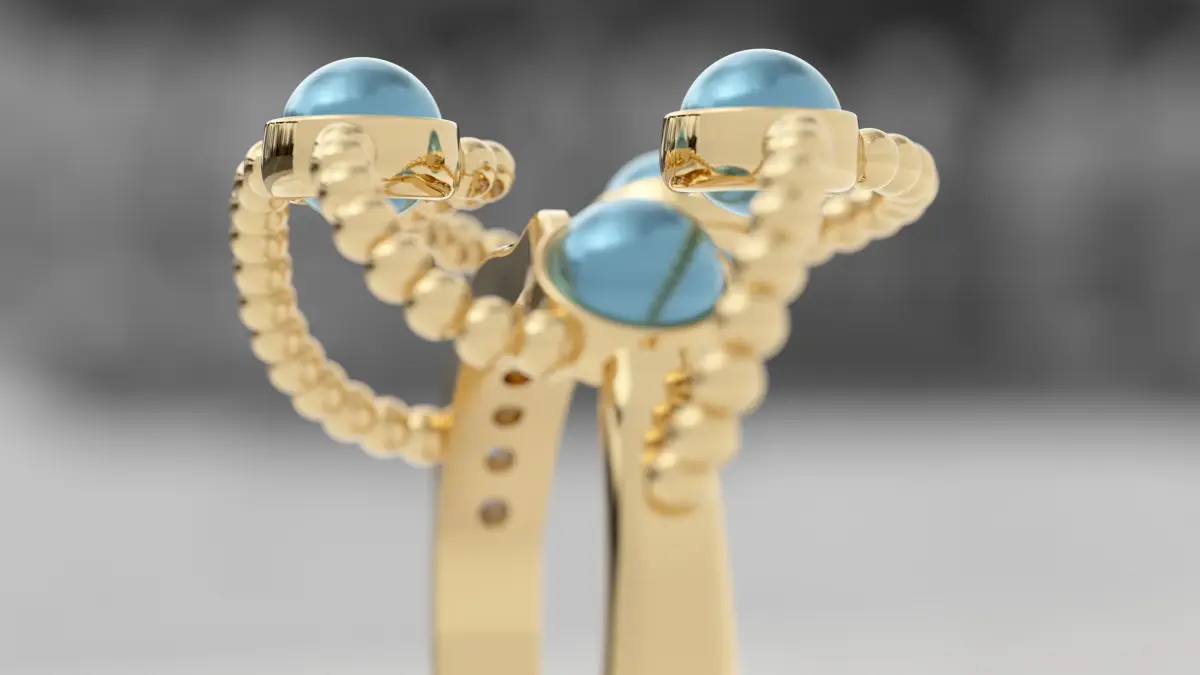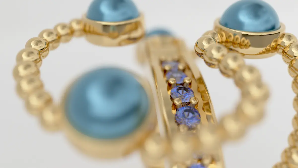 High-Fidelity Detail: Meticulously modeled to capture the unique luster of the blue pearls, the brilliance of the sapphires, and the intricate texture of the beaded gold elements.