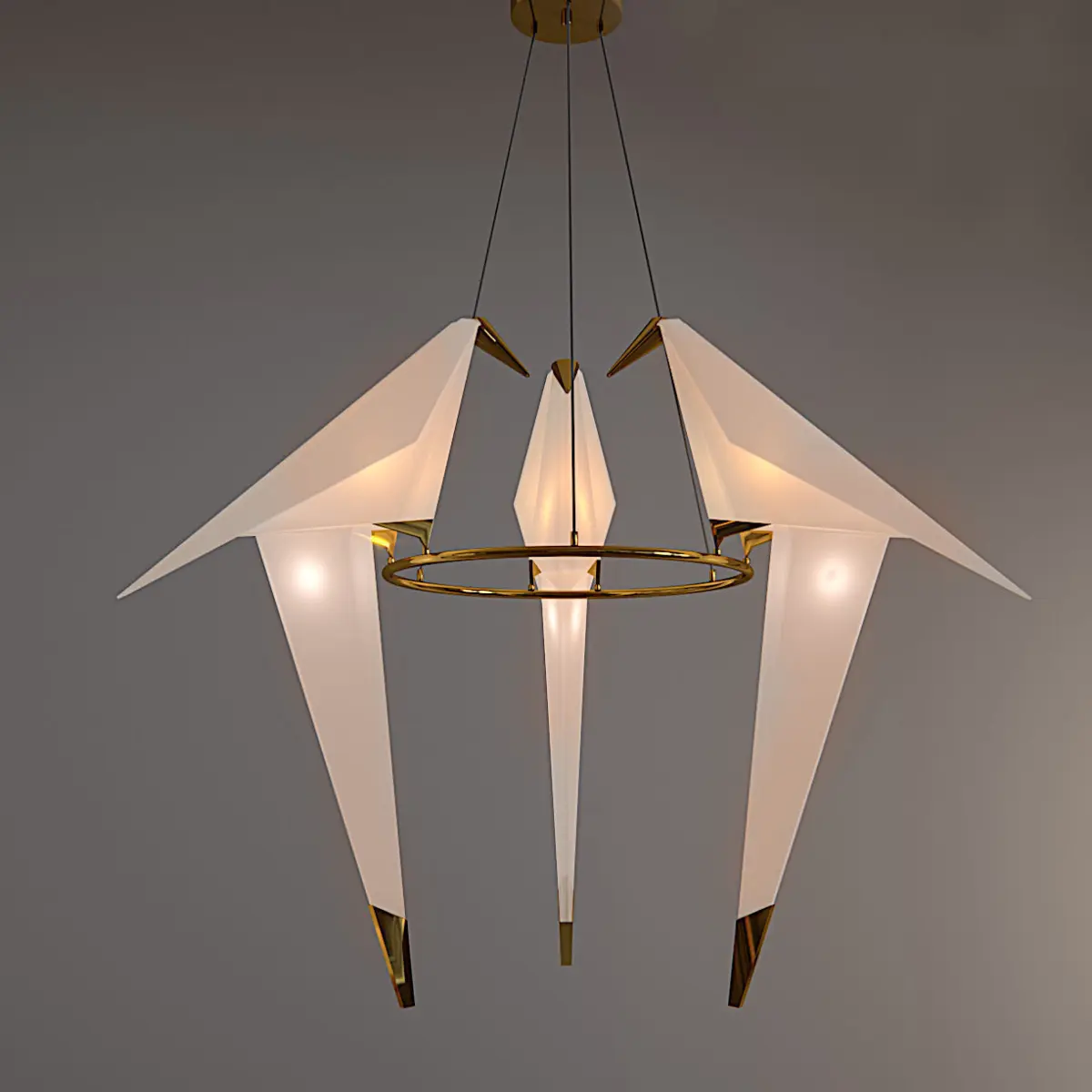 Enhance your interior design projects with this Luxurious Origami Bird Chandelier 3D Model, crafted with precision and attention to detail. Inspired by the elegance of origami art, this chandelier features bird-shaped light fixtures perched gracefully on a golden circular frame. Perfect for upscale interior renders, it combines artistic design with functionality to create a captivating centerpiece.
