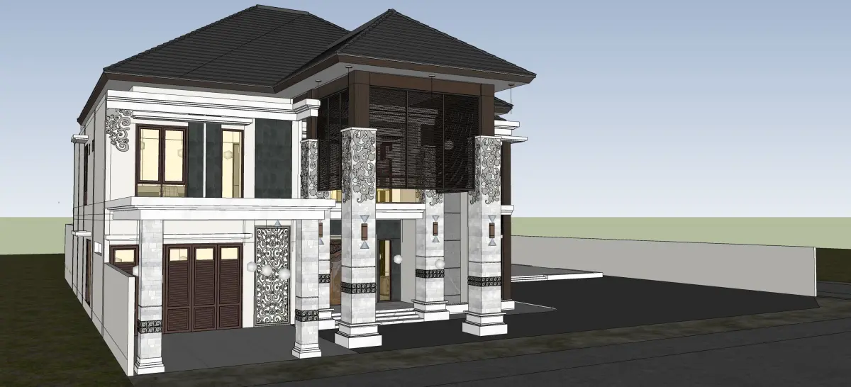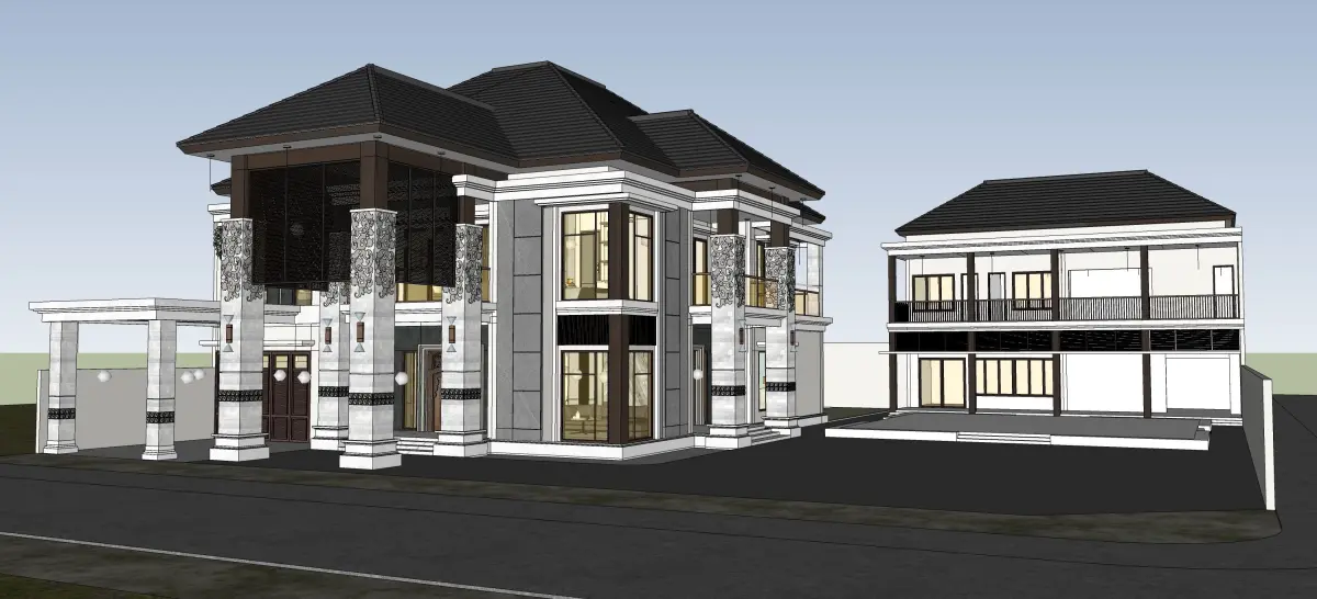 Luxury 2 floor House design with wooden House for receptionvilla balinese stylejoglo or wooden house interiorbedroombathroompoolgaragekitchenplaying room for childguestroomliving roometc.