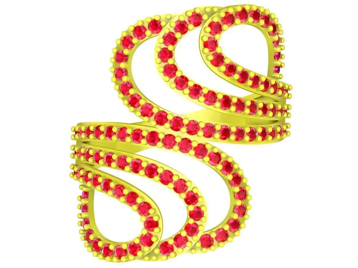 This 3D jewelry model features a luxury abstract swirl pave gemstone ring designed for women, showcasing a dynamic and artistic flowing design. The ring top is formed by elegant curved lines that intertwine gracefully, fully accented with round gemstones set in precise pave rows to create continuous sparkle and visual movement.