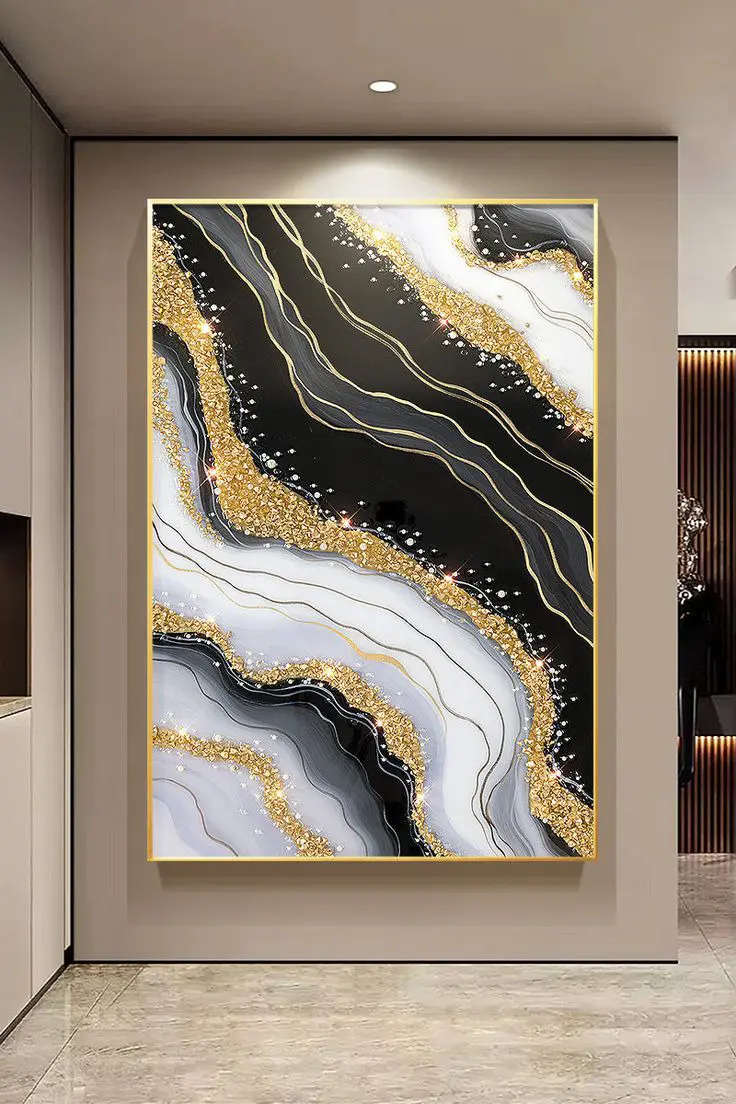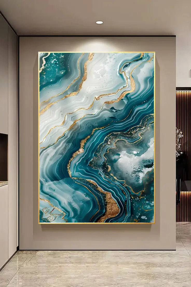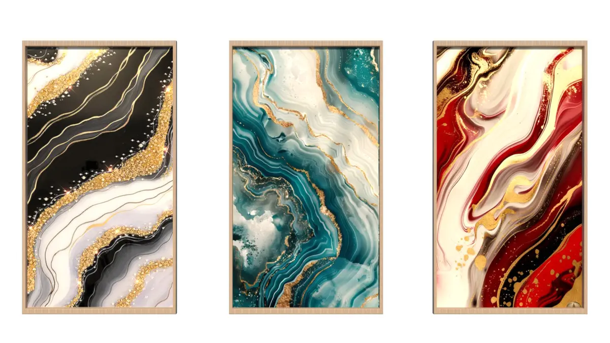 Bring elegance and depth to any modern interior with this luxurious 3-piece 3D wall art set. Each panel features a unique abstract marbled design inspired by natural gemstones, enhanced with gold textures and high-quality rendering.