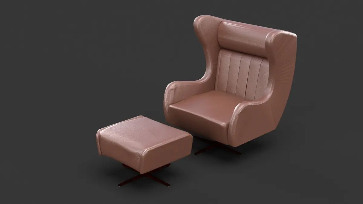 A luxurious High back, Wing chair provided with Footstool. Can be used as a casual seating either in Drawing Room or Living Room. A furniture that goes wel with Modern, Contemporary and Minimalist Interior styles. Upholstered with leather that gives this furniture a rich and luxurious look. A detailed model with low polygons. Gives a rich and luxurious feel wherever it is used.