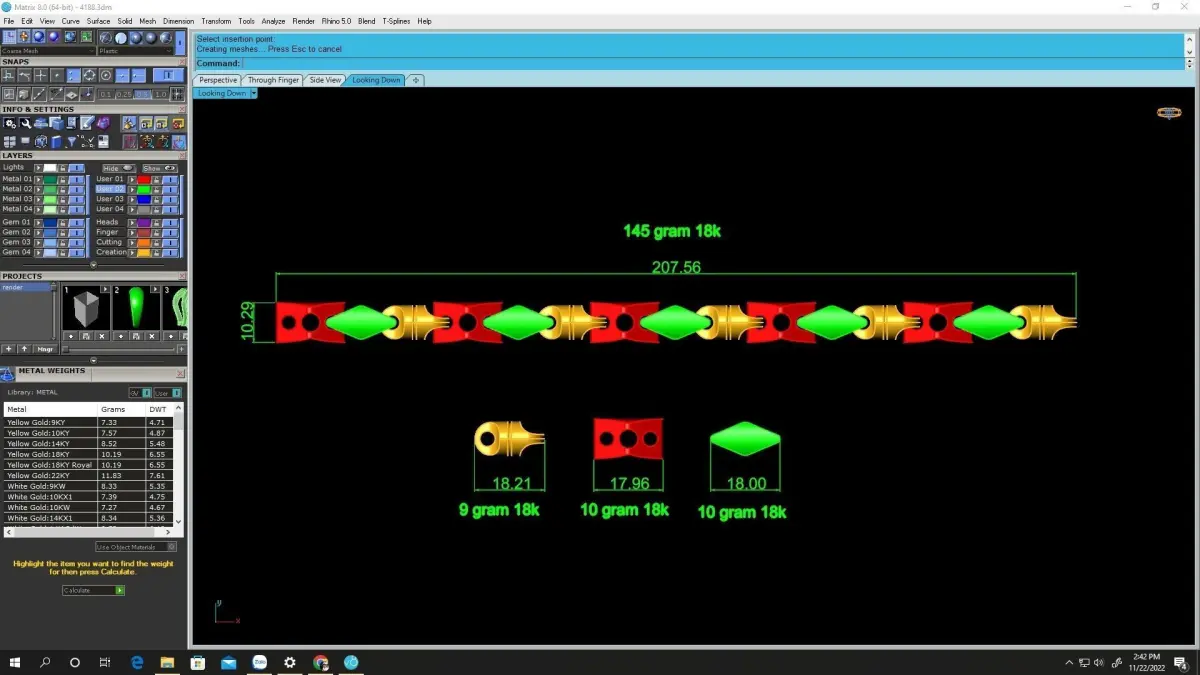 All preview images include full technical information such as dimensions, link sizes, metal weight, and structural details. The model is optimized for jewelry manufacturing, polishing, and assembly.