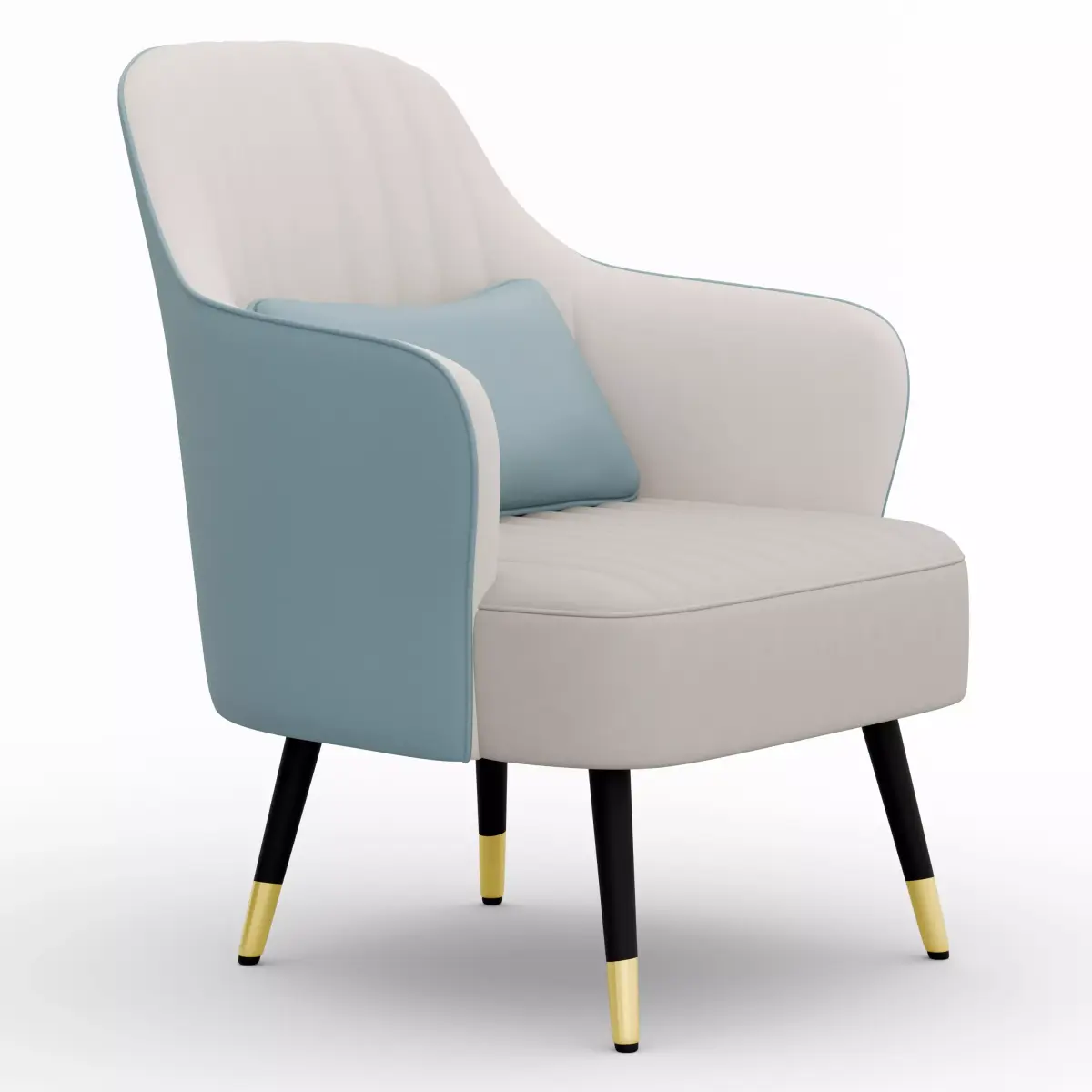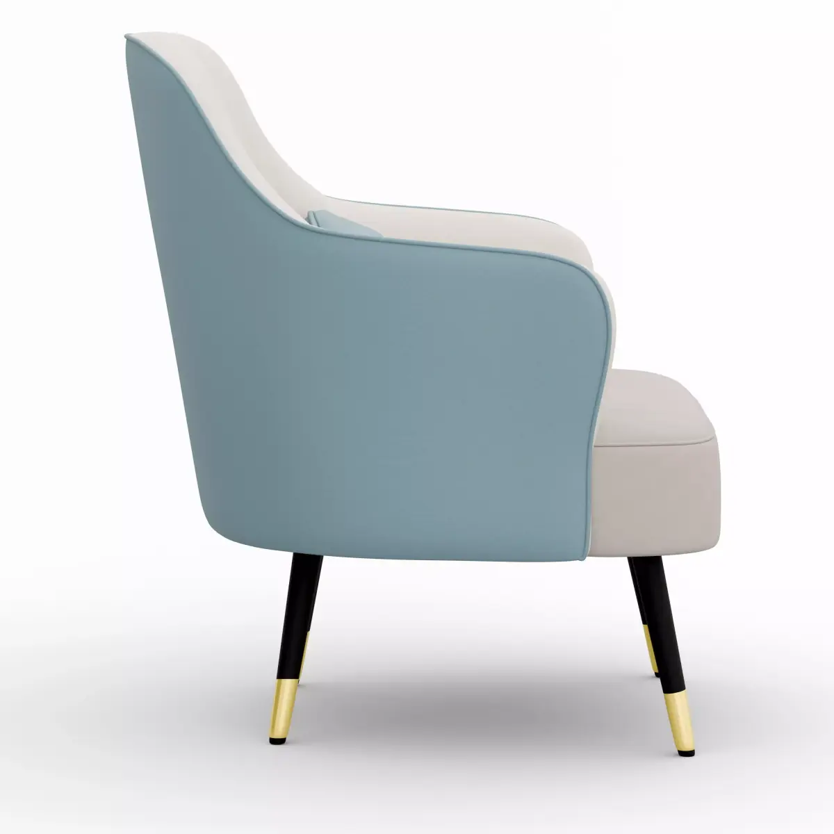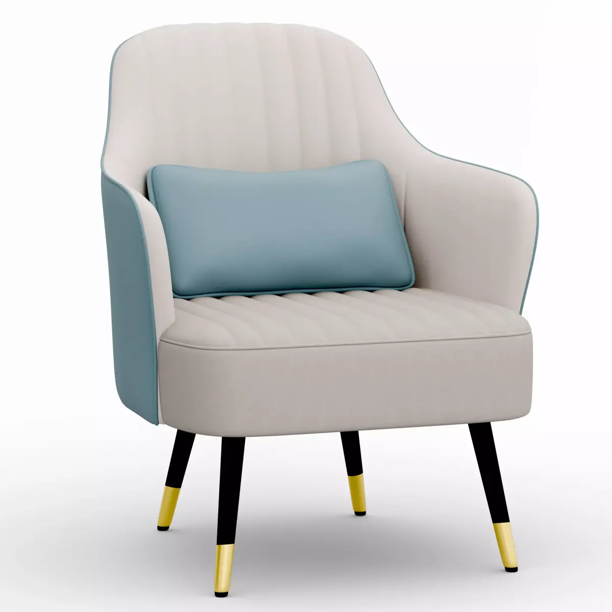 This is a high-quality 3D model of a modern accent armchair, designed for interior visualization, product catalogs, AR/VR projects, and architectural renders.The chair features a soft upholstered seat in a stylish color combination, curved backrest, a comfortable cushion, and sleek black legs with gold tips – making it perfect for any contemporary living room or lounge scene.Product Dimensions (Real-World Scale):
