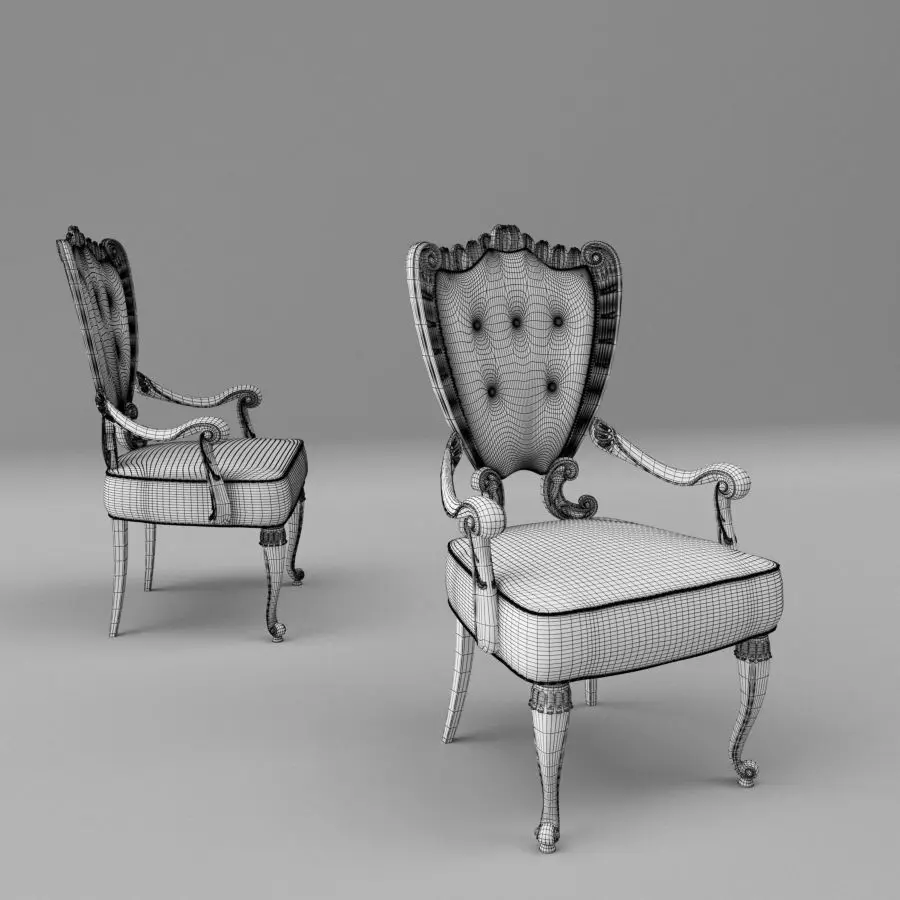 The chair model is presented as a group of meshes, consisting of: legs, seating, arms support and back support.