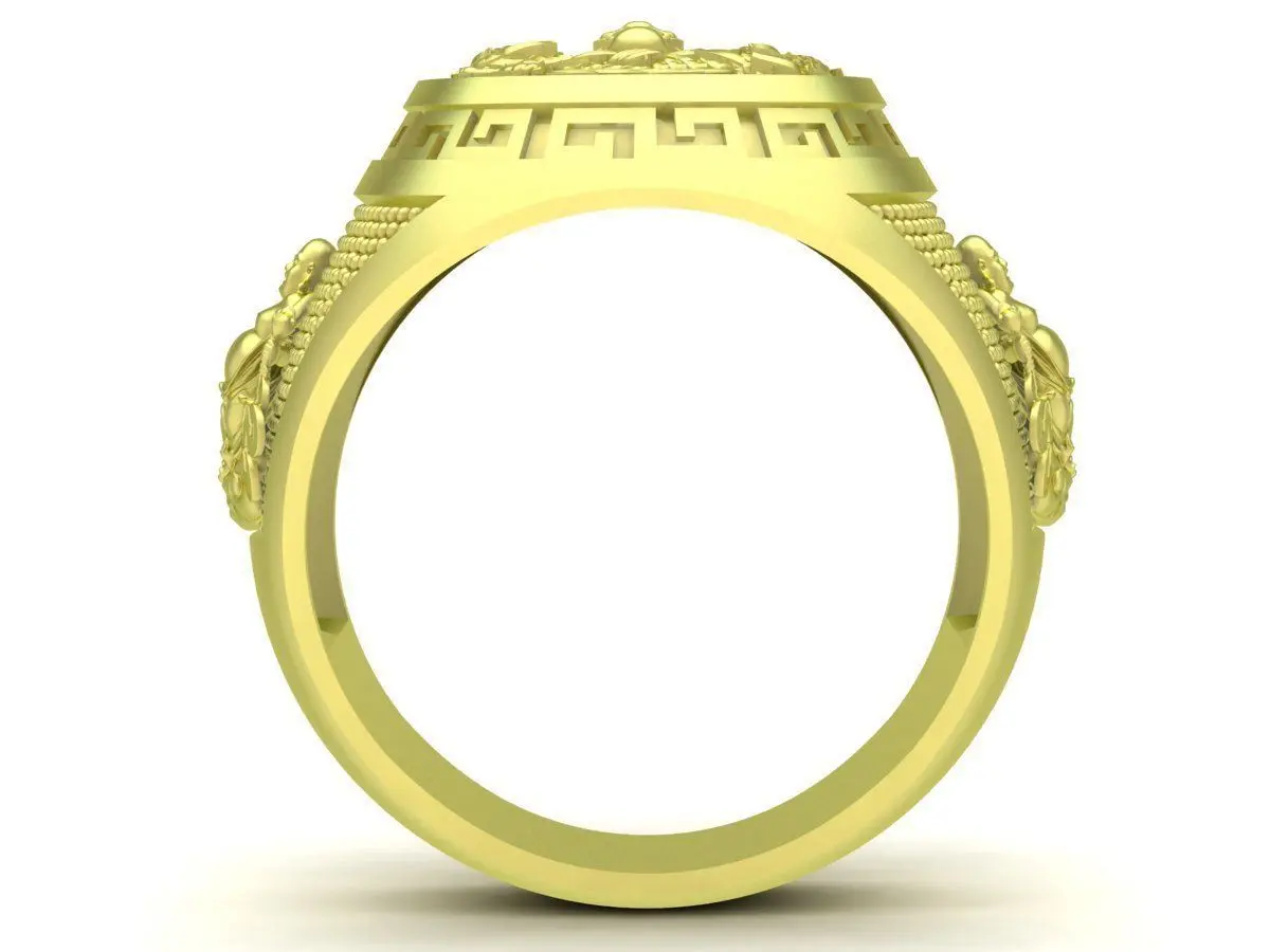 The solid structure and balanced proportions ensure durability, comfortable wear, and ease of finishing during production. The side surfaces are carefully sculpted with ornamental details, adding refinement while maintaining a strong masculine presence suitable for high-end jewelry collections.