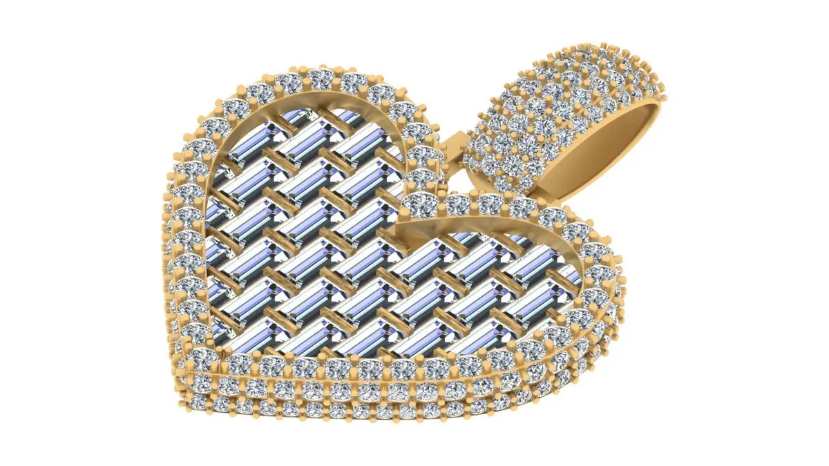 The Luxury Basket-Weave Diamond Heart Pendant is a magnificent statement piece, designed for those who seek elegance, uniqueness, and opulence in their jewelry collection. This pendant showcases an intricate basket-weave pattern within the heart, creating a stunning visual effect that blends modern sophistication with classic romance. The outer frame and bail are encrusted with brilliant round-cut diamonds, enhancing its grandeur and sparkle.