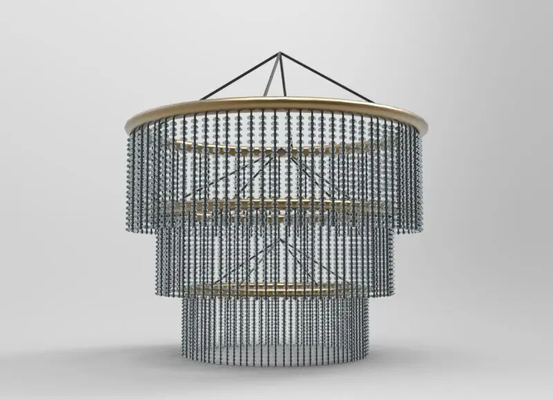 This high-quality 3D model of a luxury beaded chandelier is perfect for interior design visualizations, architectural renders, and high-end CGI projects. It features intricately detailed bead strands arranged in a cascading design, creating a sophisticated and elegant look.