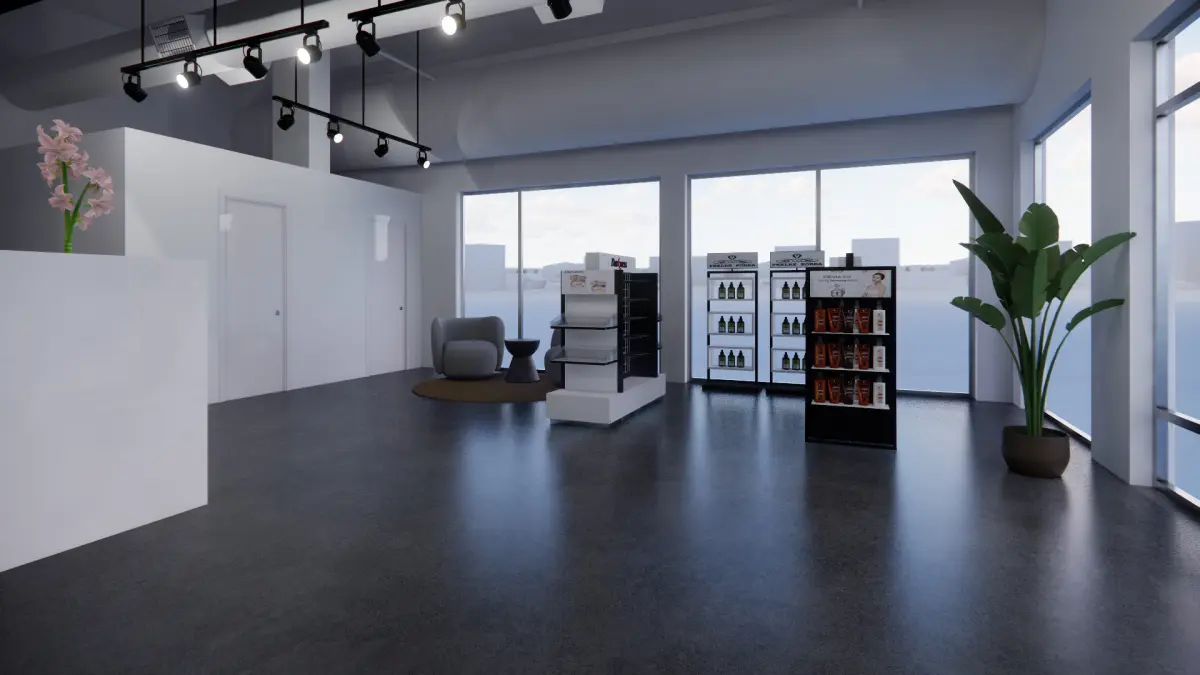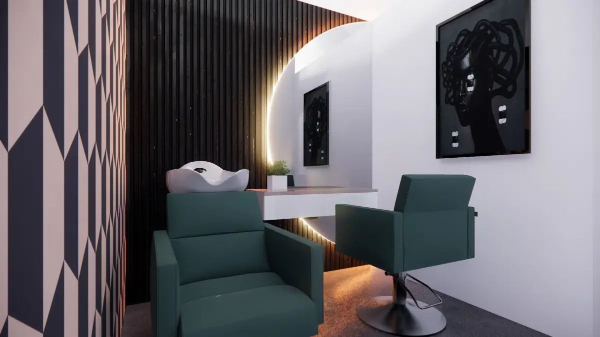Beauty Salon space. This file has no protection. It is a modern-styled Hair salon store ready to render with V-Ray or Enscape software. FBX files can be imported into various modelling applications, such as Maya, 3ds Max, SketchUp, and Blender. Inside the file, one will find multiple materials, light setups, and camera angles that can easily be adjusted or changed to personal taste. This file does not have any protection. You can reuse the scene, the render settings, the lights, and the materials, but above all you can learn from the file, moving inside the project, observing how the light was created and handled, how materials are developed, what is the role that every texture play within them, and the values that fill every single option.