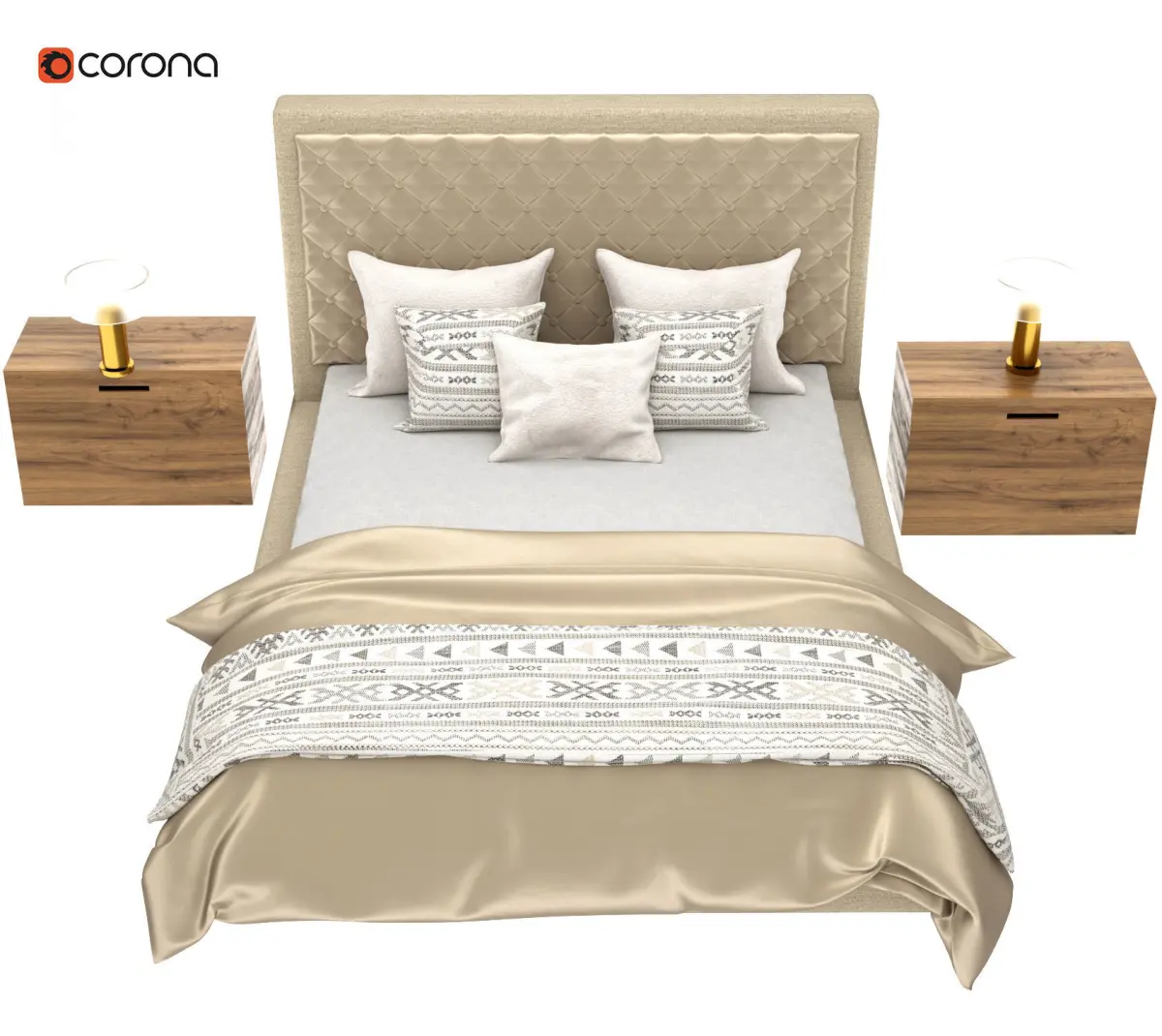 The bed is a nice-looking frame design and a royally luxurious headboard. The model is ideal for any bedroom, both in a private house and in a city apartment.The high headboard has a slight curve, which gives visual dynamism to the entire model, and it also helps to sit on the bed with maximum comfort.Formats: 3d max 2018 3d max obj+fbx