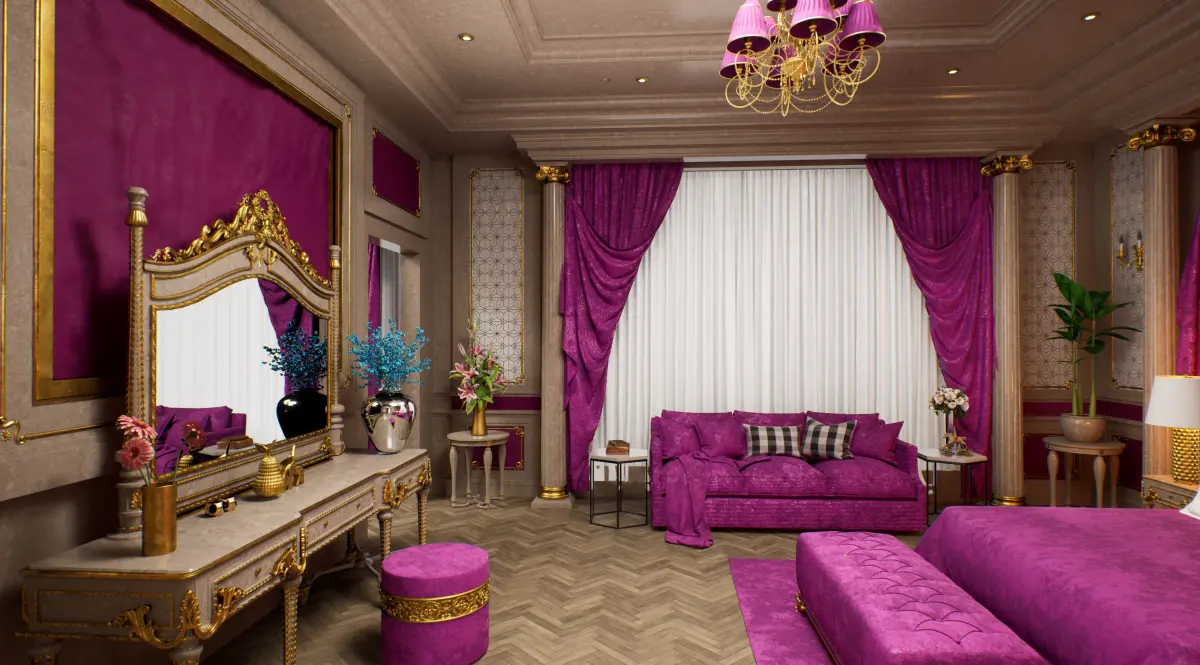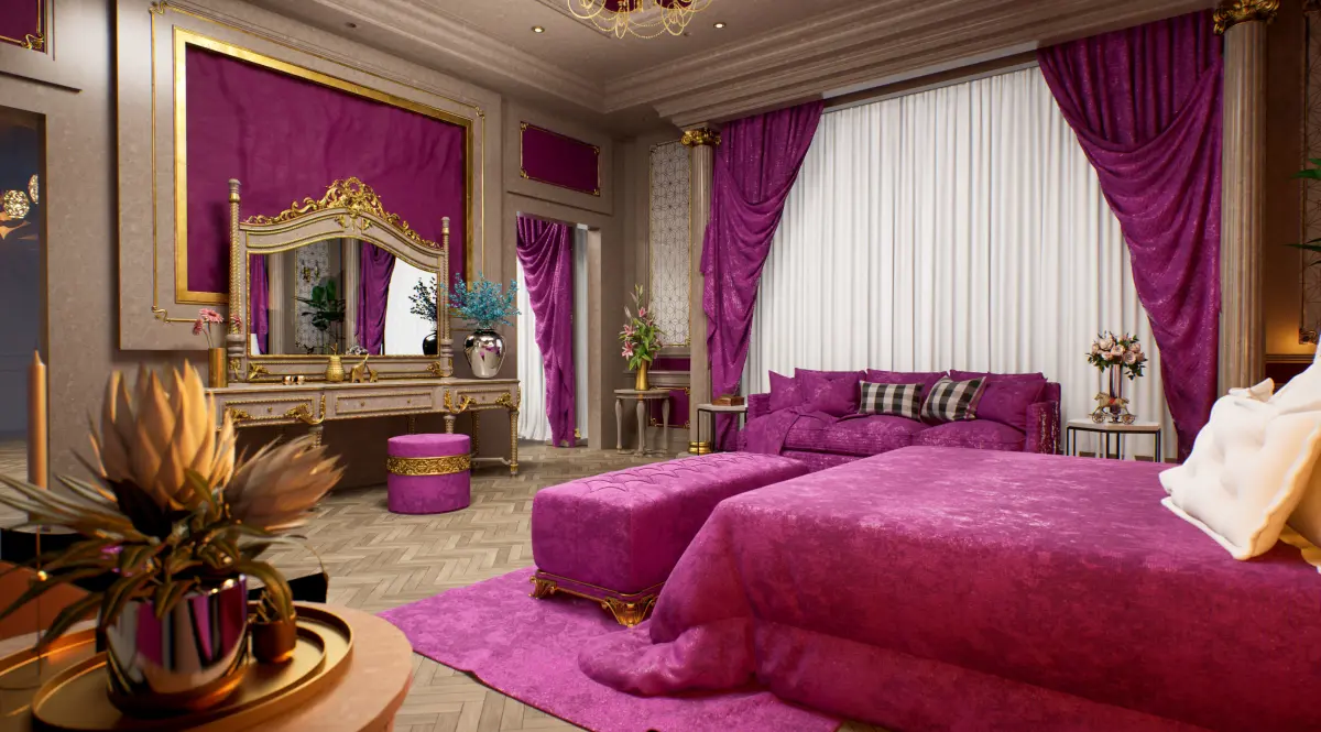 This is A Luxurious BedRoom Scene With Daylight Setup, RealTimeRender With Unreal Engine. Inside The Zip File, You'll Find 137 Materials, 231Textures. There Is No Post-Production Need, When You Hit The Render, You Get Exactly What You See In The Preview. High-Quality Models. Texture Resolution Varies From1K From 4K. HDRI included. All Object Are GroupedAll Assets are included with Textures.