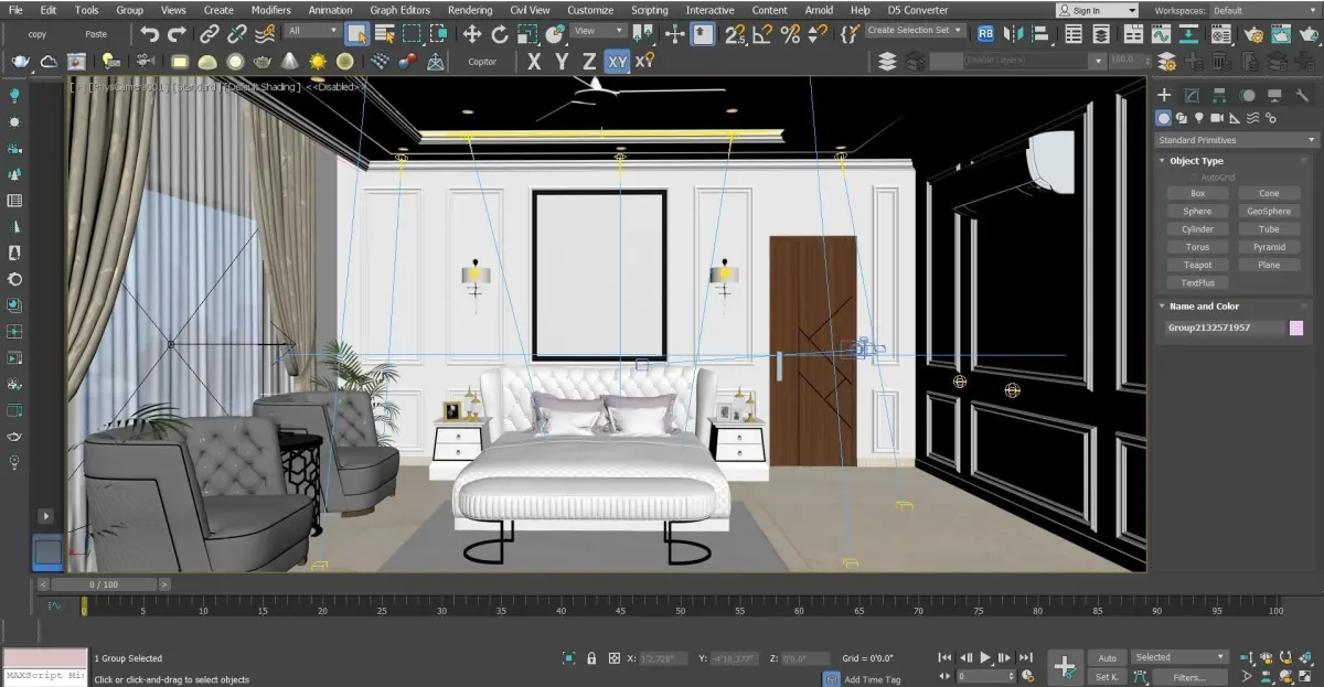 A Luxury Bedroom Interior finished in white theme photorealistic 3d renderings. Includes 3ds max file, .fbx file with all lighting and rendering settings. This scene is compatible with 3ds max 2016 or higher versions.